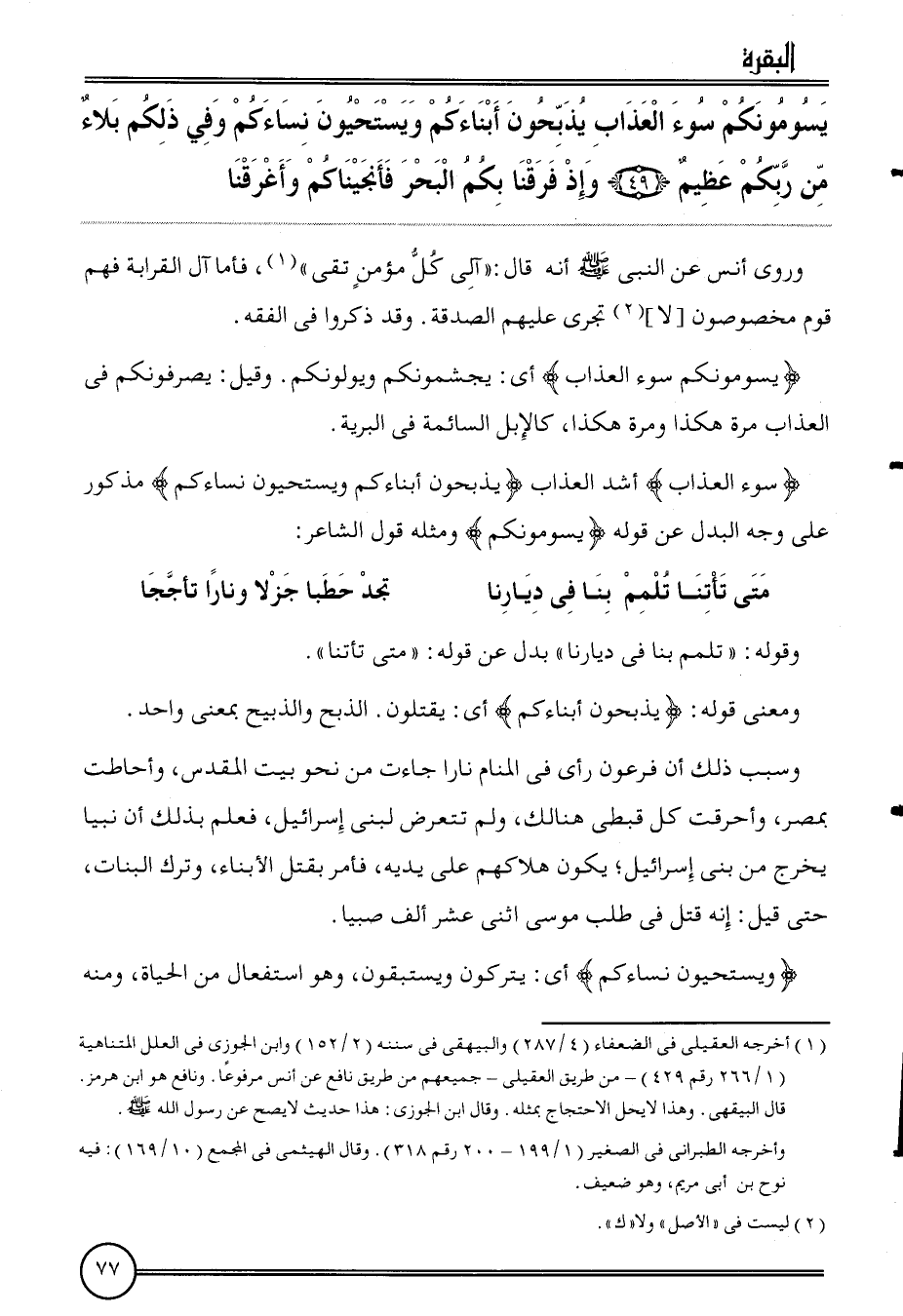 {يسومونكم سوء الْعَذَاب يذبحون أبناءكم ويستحيون نساءكم وَفِي ذَلِكُم بلَاء من ربكُم عَظِيم (49) وَإِذ فرقنا بكم الْبَحْر فأنجيناكم وأغرقنا}