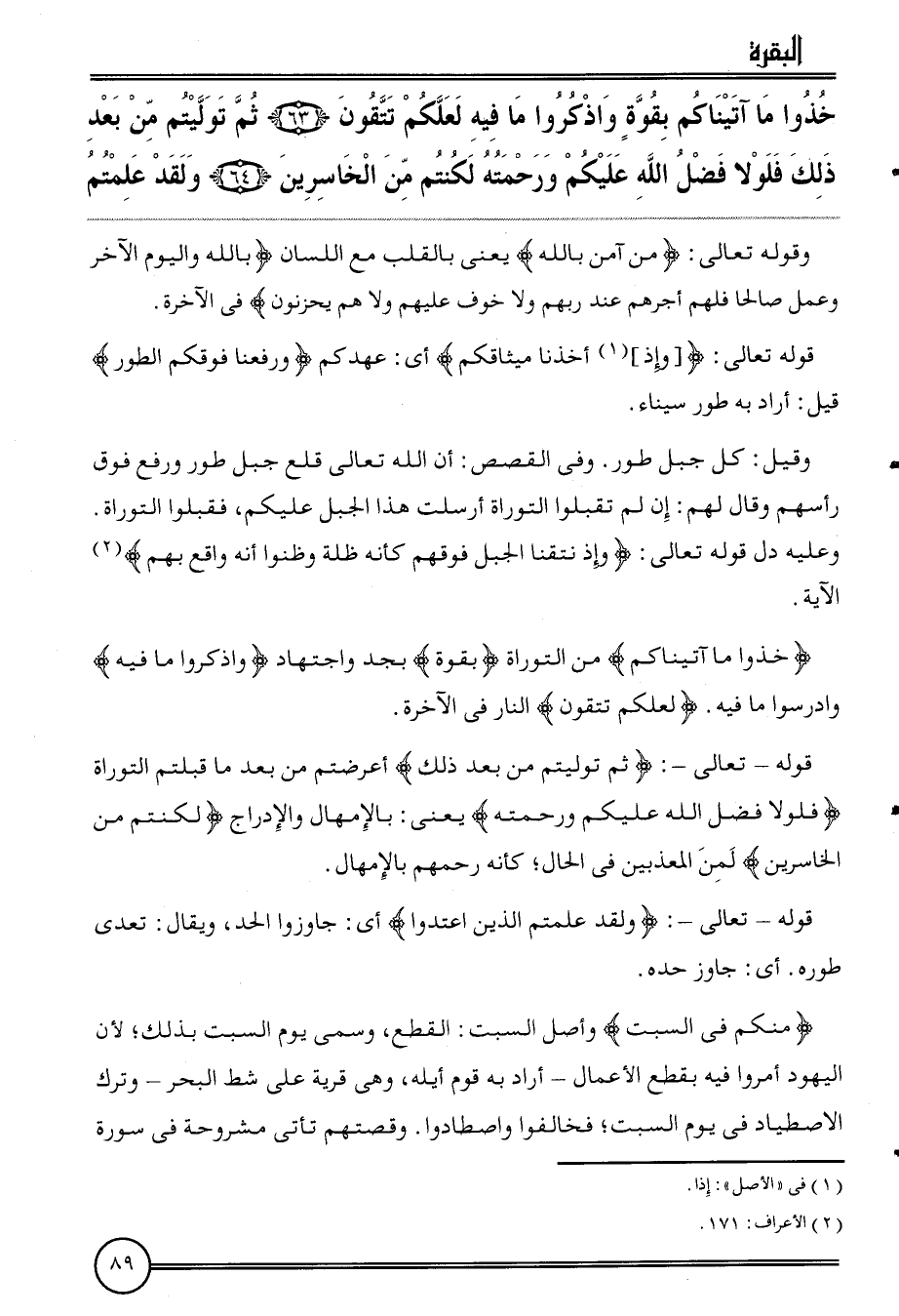 {خُذُوا مَا آتيناكم بِقُوَّة واذْكُرُوا مَا فِيهِ لَعَلَّكُمْ تَتَّقُون (63) ثمَّ توليتم من بعد ذَلِك فلولا فضل الله عَلَيْكُم وَرَحمته لكنتم من الخاسرين (64) وَلَقَد علمْتُم}