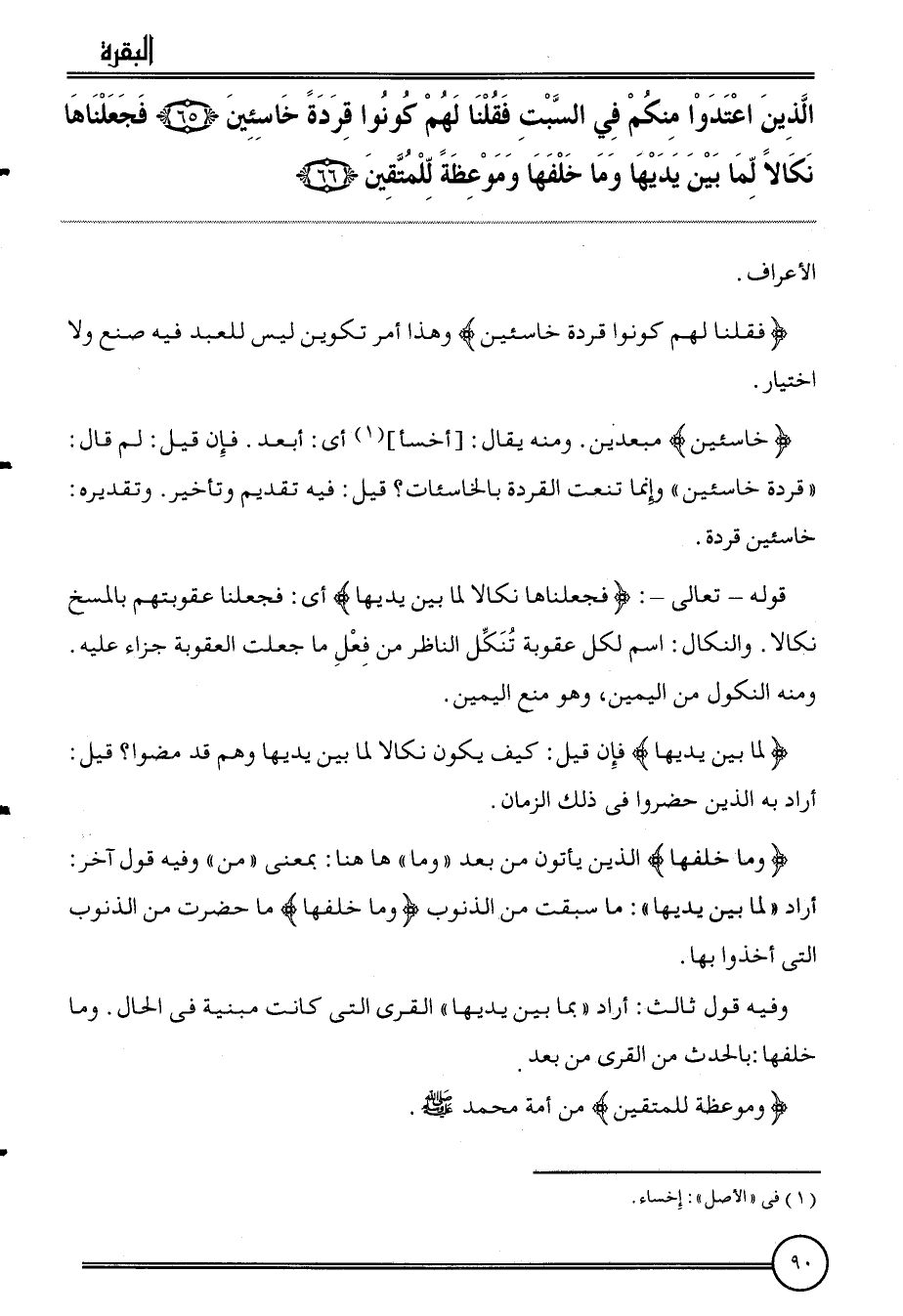 {الَّذين اعتدوا مِنْكُم فِي السبت فَقُلْنَا لَهُم كونُوا قردة خَاسِئِينَ (65) فجعلناها نكالا لما بَين يَديهَا وَمَا خلفهَا وموعظة لِلْمُتقين (66) } الْأَعْرَاف.