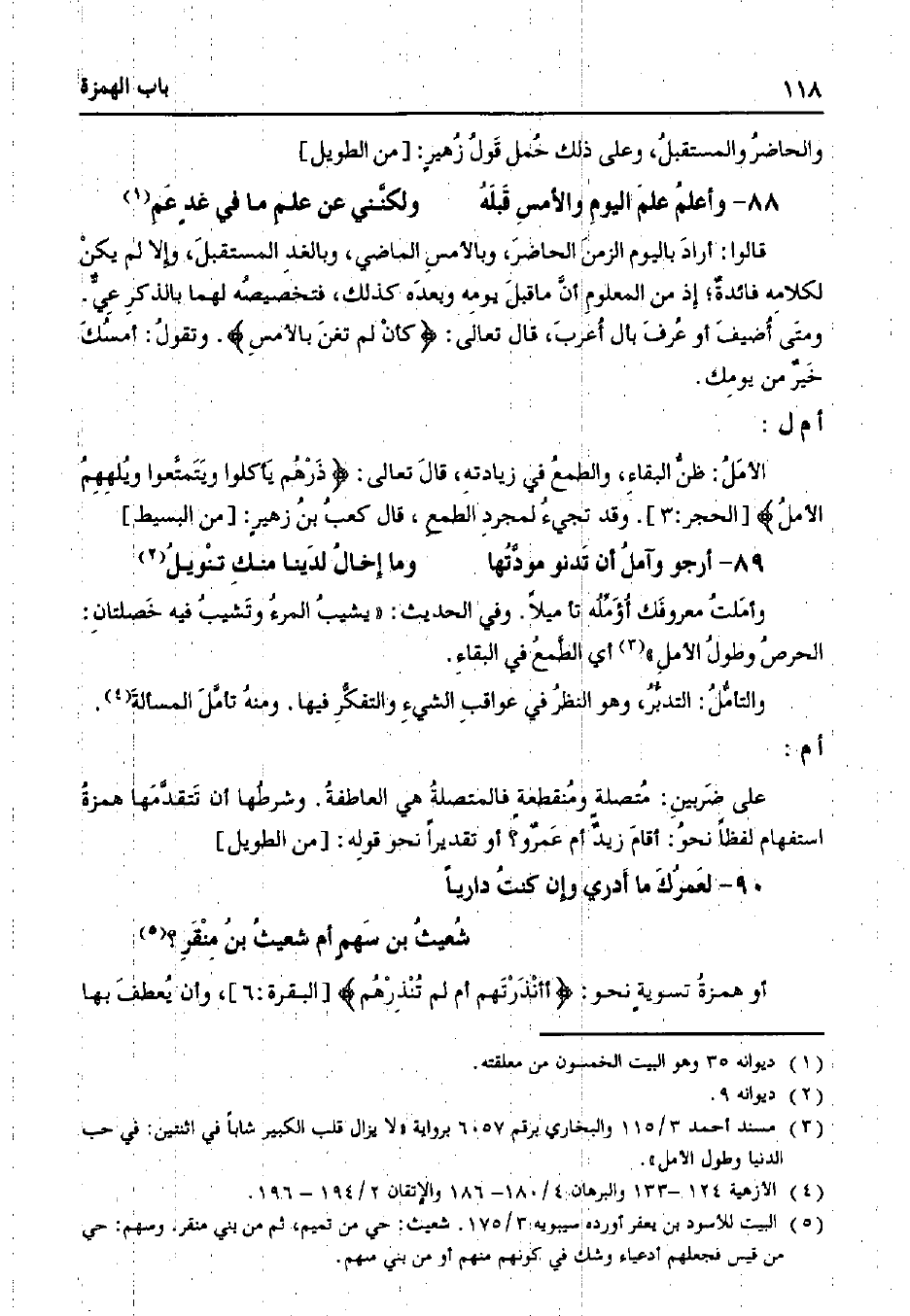 الأمل: ظن البقاء، والطمع في زيادته، قال تعالى:} ذرهم يأكلوا ويتمتعوا ويلههم الأمل {[الحجر: 3]. وقد تجيء لمجرد الطمع، قال كعب بن زهيرٍ: [من البسيط]