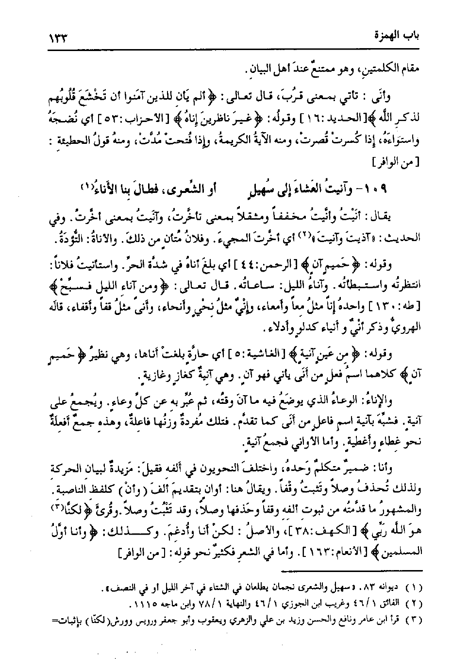 109 - وآنيت العشاء إلى سهيلٍ ... أو الشعري، فطال بنا الأناء