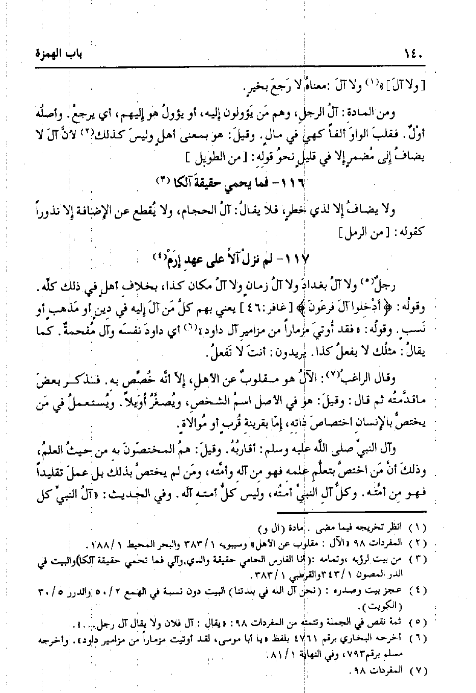 رجل ولا آل بغداد ولا آل زمانٍ ولا آل مكان كذا، بخلاف أهلٍ في ذلك كله. وقوله:} أدخلوا آل فرعون {[غافر: 46] يعني بهم كل من آل إليه في دينٍ أو مذهبٍ أو نسبٍ. وقوله: "فقد أوتي مزمارًا من مزامير آل داود" أي داود نفسه وآل مقحمة. كما يقال: مثلك لا يفعل كذا. ويريدون: أنت لا تفعل.