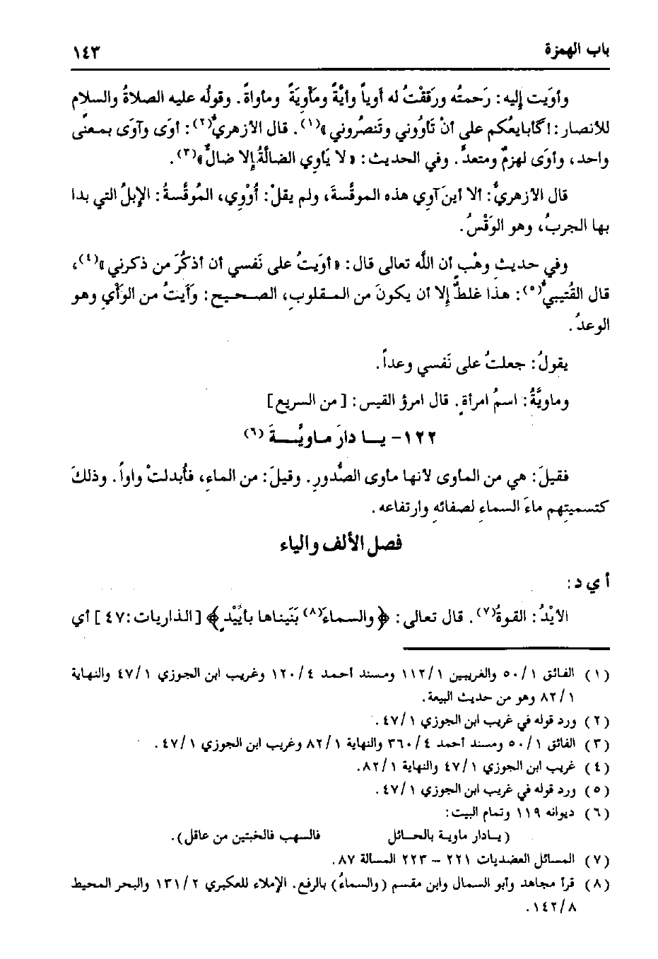 وفي حديث وهب أن الله تعالى قال: "أويت على نفسي أن أذكر من ذكرني"، قال القتيبي: هذا غلط إلا أن يكون من المقلوب، الصحيح: وأيت من الوأي وهو الوعد.