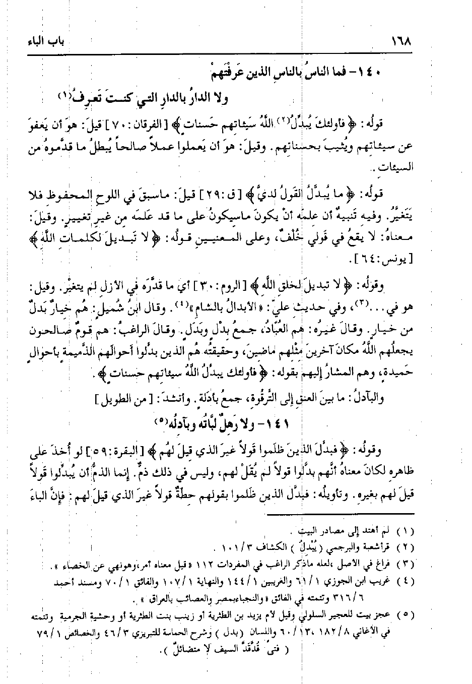 وقوله:} لا تبديل لخلق الله {[الروم: 30] أي ما قدره في الأزل لم يتغير. وقيل: هو في ... ، وفي حديث علي: "الأبدال بالشام". وقال ابن شميلٍ: هم خيار بدل من خيار. وقال غيره: هم العباد، جمع بدلٍ وبدلٍ. وقال الراغب: هم قوم صالحون يجعلهم الله مكان آخرين مثلهم ماضين، وحقيقته هم الذين بدلوا أحوالهم الذميمة بأحوالٍ حميدةٍ، وهم المشار إليهم بقوله:} فأولئك يبدل الله سيئاتهم حسناتٍ {.