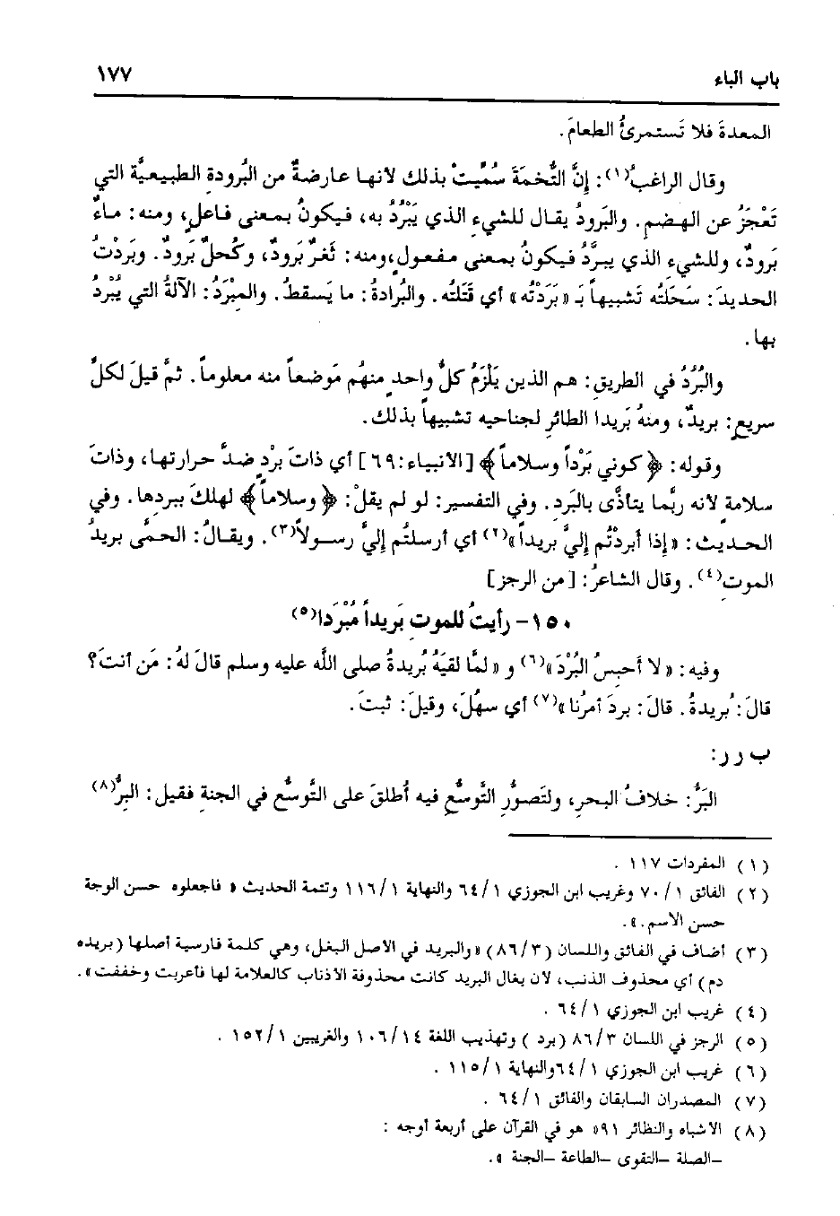وقوله:} كوني بردًا وسلامًا {[الأنبياء: 69] أي ذات بردٍ ضد حرارتها، وذات سلامةٍ لأنه ربما يتأذى بالبرد. وفي التفسير: لو لم يقل:} وسلامًا {لهلك ببردها. وفي الحديث: "إذا أبردتم إلى بريدًا" أي أرسلتم إلي رسولاً. ويقال: الحمى بريد الموت. وقال الشاعر: [من الرجز]