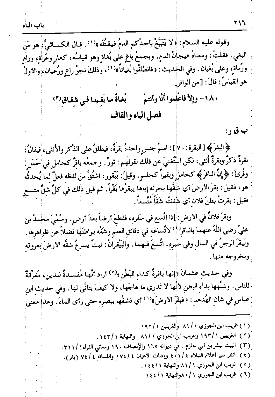 وقوله عليه السلام: "لا يتبيغ بأحدكم الدم فيقتله". قال الكسائي: هو من البغي. فقلت: ومعناه هيجان الدم. ويجمع باغٍ على بغاةٍ وهو قياسه، كعارٍ وعراةٍ، ورامٍ ورماةٍ، وعلى بغيان. وفي الحديث: "فانطلقوا بغيانًا"، وذلك نحو راعٍ ورعيان، والأول هو القياس: قال: [من الوافر]