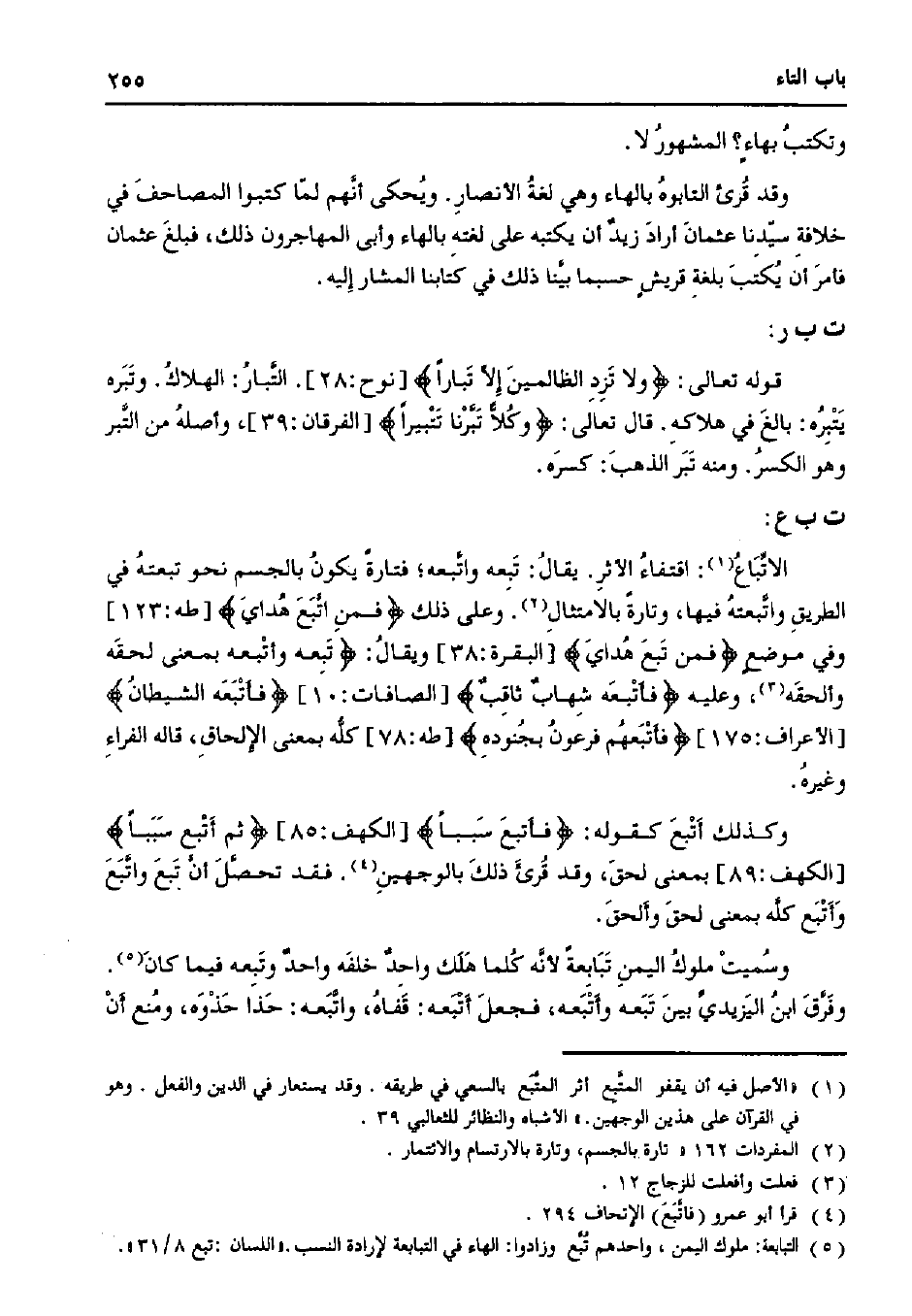 الإتباع: اقتفاء الأثر. يقال: تبعه واتبعه؛ فتارةٌ يكون بالجسم نحو تبعته في الطريق واتبعته فيها، وتارة بالامتثال. وعلى ذلك {فمن اتبع هداي} [طه: 123] وفي موضع {فمن تبع هداي} [البقرة: 38] ويقال: {تعبه وأتبعه بمعنى لحقه وألحقه، وعليه {فأتبعه شهابٌ ثاقبٌ} [الصافات: 10] {فأتبعه الشيطان} [الأعراف: 175] {فأتبعهم فرعون بجنوده} [طه: 78] كله بمعنى الإلحاق، قاله الفراء وغيره.