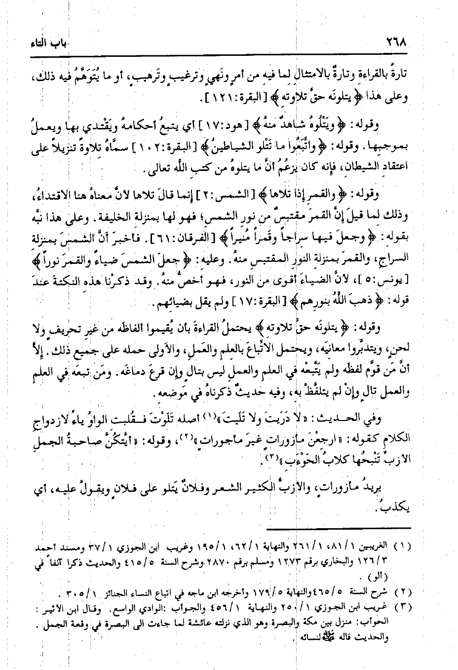 تارة بالقراءة وتارة بالامتثال لما فيه من أمرٍ ونهيٍ وترغيبٍ وترهيبٍ، أو ما يتوهم فيه ذلك، وعلى هذا {يتلونه حق تلاوته} [البقرة: 121].