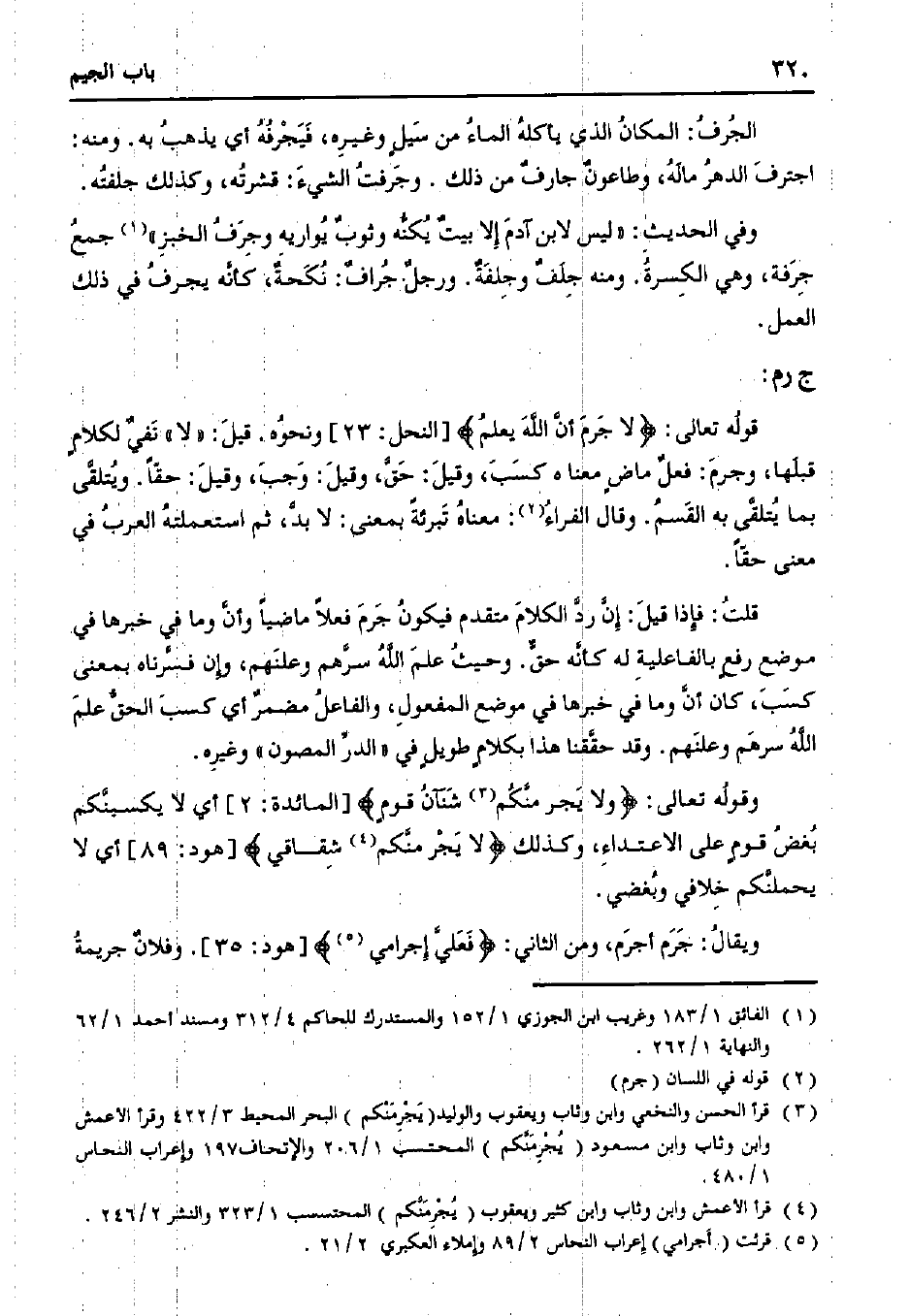 قوله تعالى: {لا جرم أن الله يعلم} [النحل: 23] ونحوه. قيل: "لا" نفي لكلامٍ قبلها، وجرم: فعل ماضٍ معناه كسب، وقيل: حق، وقيل: وجب، وقيل: حقًا. ويتلقى بما يتلقى به القسم. وقال الفراء: معناه تبرئةً بمعنى: لا بد، ثم استعملته العرب في معنى حقًا.