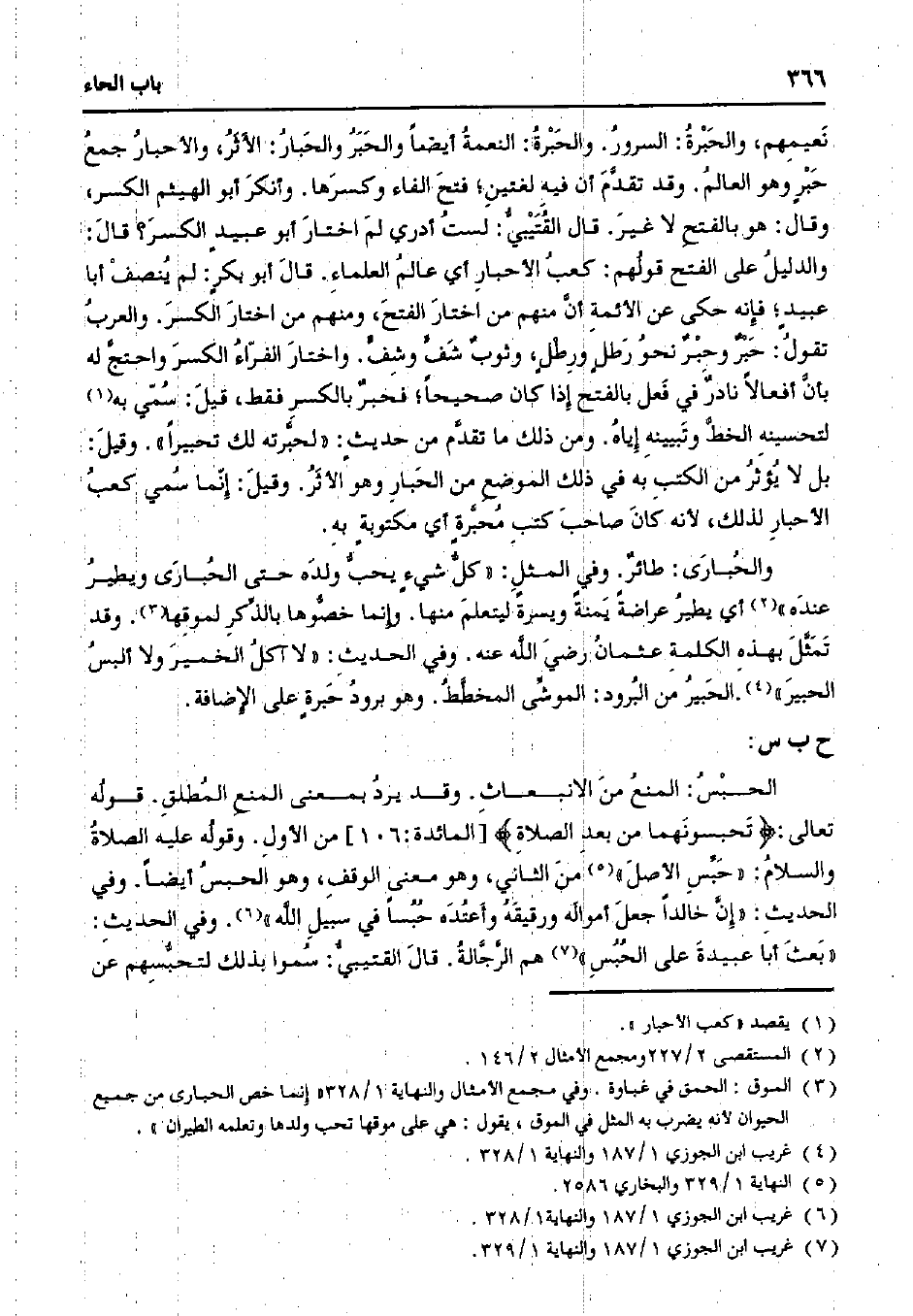 نعيمهم، والحبرة: السرور. والحبرة: النعمة أيضًا والحبر والحبار: الأثر، والأحبار جمع حبر وهو العالم. وقد تقدم أن فيه لغتين؛ فتح الفاء وكسرها. وأنكر أبو الهيثم الكسر، وقال: هو بالفتح لا غير. قال القتيبي: لست أدري لم اختار أبو عبيد الكسر؟ قال: والدليل على الفتح قولهم: كعب الأحبار أي عالم العلماء. قال أبو بكر: لم ينصف أبا عبيد؛ فإنه حكى عن الأئمة أن منهم من اختار الفتح، ومنهم من اختار الكسر. والعرب تقول: حبر وحبر نحو رطل ورطل، وثوب شف وشف. واختار الفراء الكسر واحتج له بأن أفعالا نادر في فعل بالفتح إذا كان صحيحًا؛ فحبر بالكسر فقط، قيل: سمي به لتحسينه الخط وتبيينه إياه. ومن ذلك ما تقدم من حديث: "لحبرته لك تحبيرًا". وقيل: بل لا يؤثر من الكتب به في ذلك الموضع من الحبار وهو الأثر. وقيل: إنما سمي كعب الأحبار لذلك، لأنه كان صاحب كتب محبرة أي مكتوبه به.