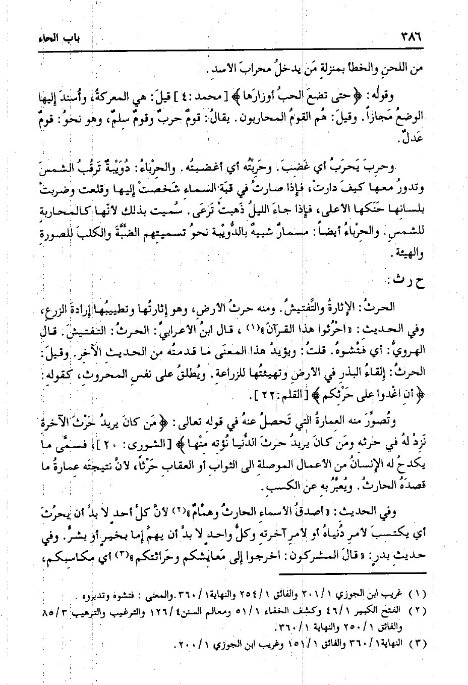 وفي الحديث:"أصدق الأسماء الحارث وهمام" لأن كل أحد لابد أن يحرث أي يكتسب لآمر دنياه أو لأمر آخرته وكل واحد لابد أن يهم إما بخير أو بشر. وفي حديث بدر:" قال المشركون: اخرجوا إلى معايشكم وحراثتكم" أي مكاسبكم،