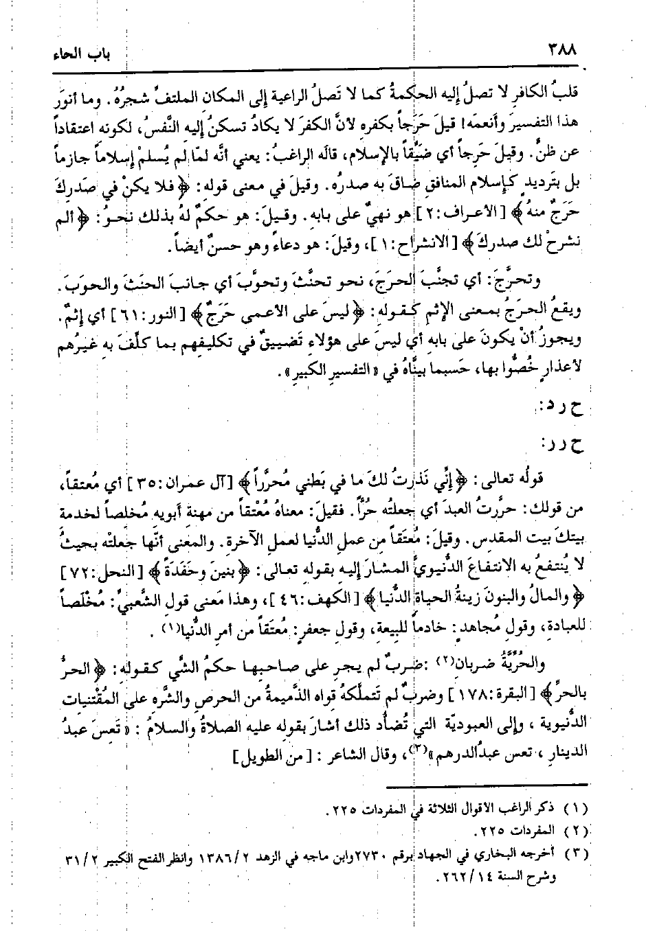 قوله تعالى: {إني نذرت لك ما في بطني محررا} [آل عمران: 35] أي معتقا،
