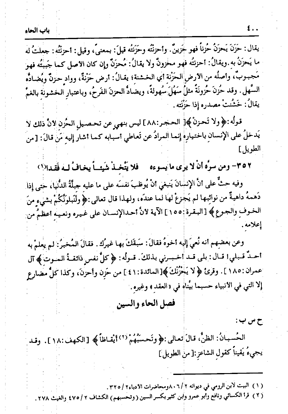 وعن بعضهم أنه نعى إليه أخوه فقال: سبقك بها غيرك. فقال المخبر: لم يعلم به أحد قبلي اقال: بلى قد أخبرتني بذلك. قوله: {كل نفس ذائقة الموت} [آل عمران: 185]. وقرئ {لا يحزنك} [المائدة: 41] من حزن وأحزن، وكذا كل مضارع إلا التي في الأنبياء حسبما بيناه في (العقد) وغيره.
