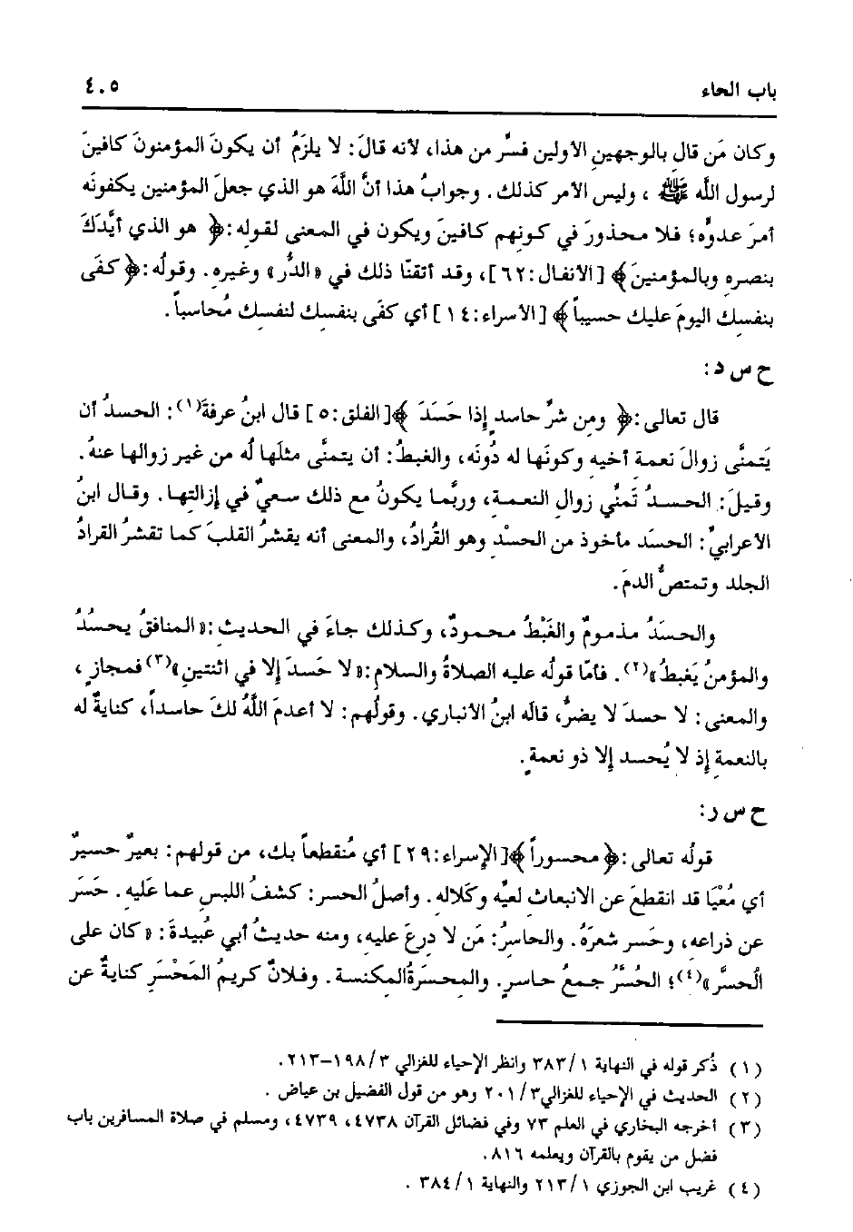 قال تعالى: {ومن شر حاسد إذا حسد} [الفلق: 5] قال ابن عرفة: الحسد أن يتمنى زوال نعمة أخيه وكونها له دونه، والغبط: أن يتمنى مثلها له من غير زوالها عنه. وقيل: الحسد تمني زوال النعمة، وربما يكون مع ذلك سعيٌ في إزالتها. وقال بان الأعرابي: الحسد مأخوذ من الحسد وهو القراد، والمعنى أنه يقشر القلب كما تقشر القراد الجلد وتمتص الدم.