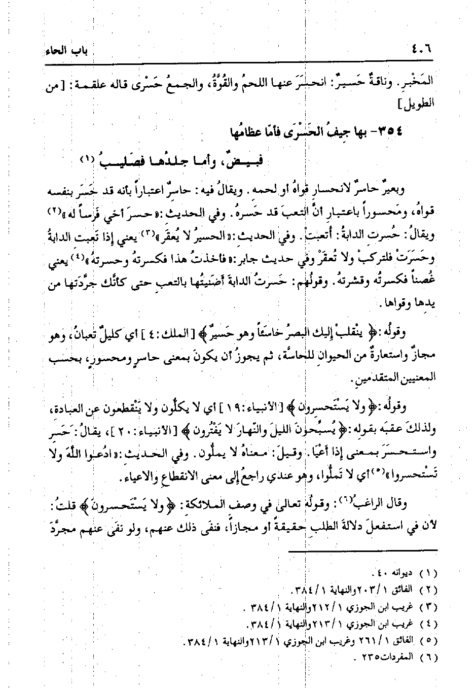 354 - بها جيف الحسرى فأما عظامها ... فبيضٌ، وأما جلدها فصليب