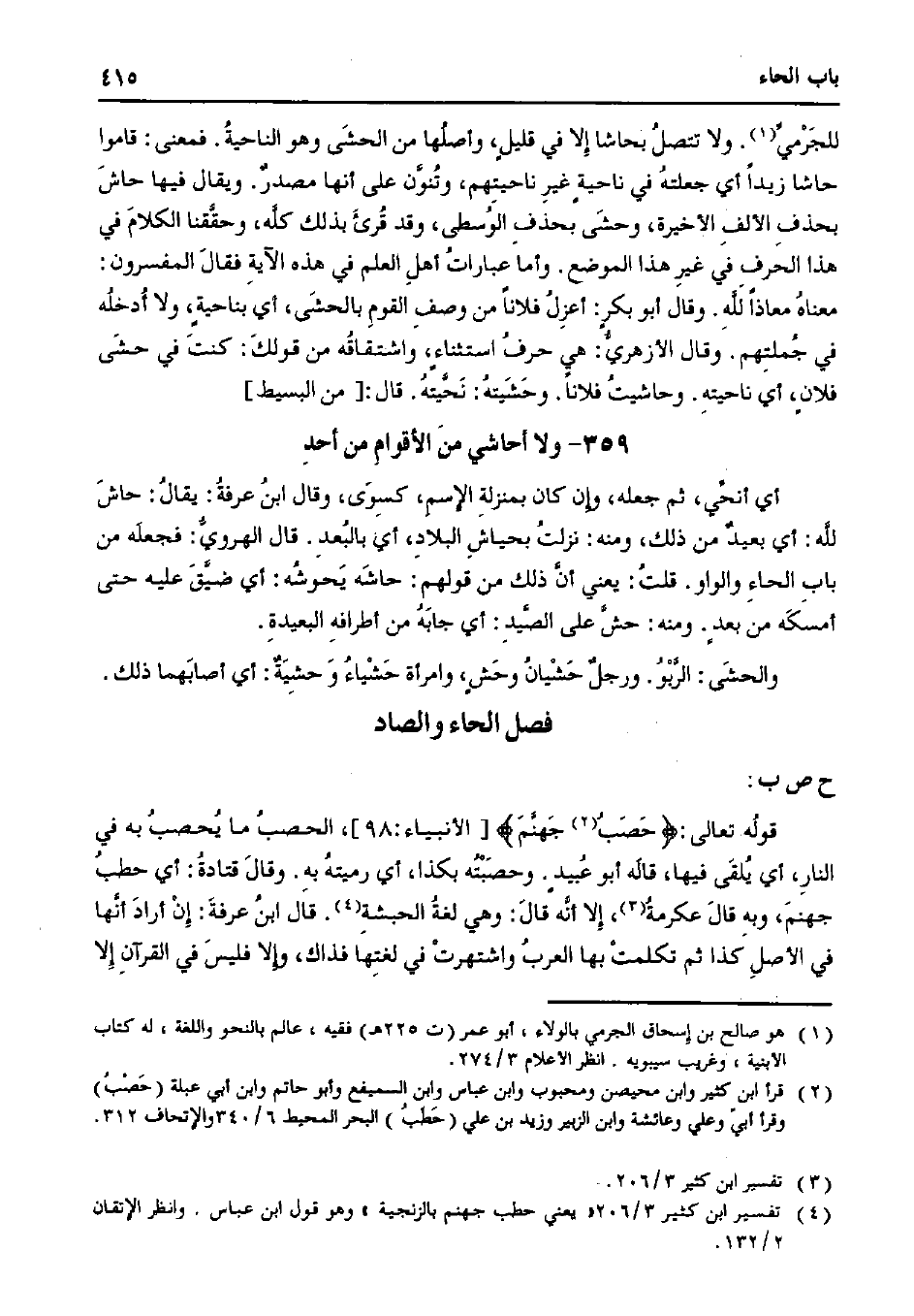 قوله تعالى: {حصب جهنم} [الأنبياء: 98]، الحصب ما يحصب به في النار، أي يلقى فيها، قاله أبو عبيد. وحصبته بكذا، أي رميته به. وقال قتادة: أي حطب جهنم، وبه قال عكرمة، إلا أنه قال: وهي لغة الحبشة. قال ابن عرفة: إن أراد أنها في الأصل كذا ثم تكلمت بها العرب واشتهرت في لغتها فذاك، وإلا فليس في القرآن إلا