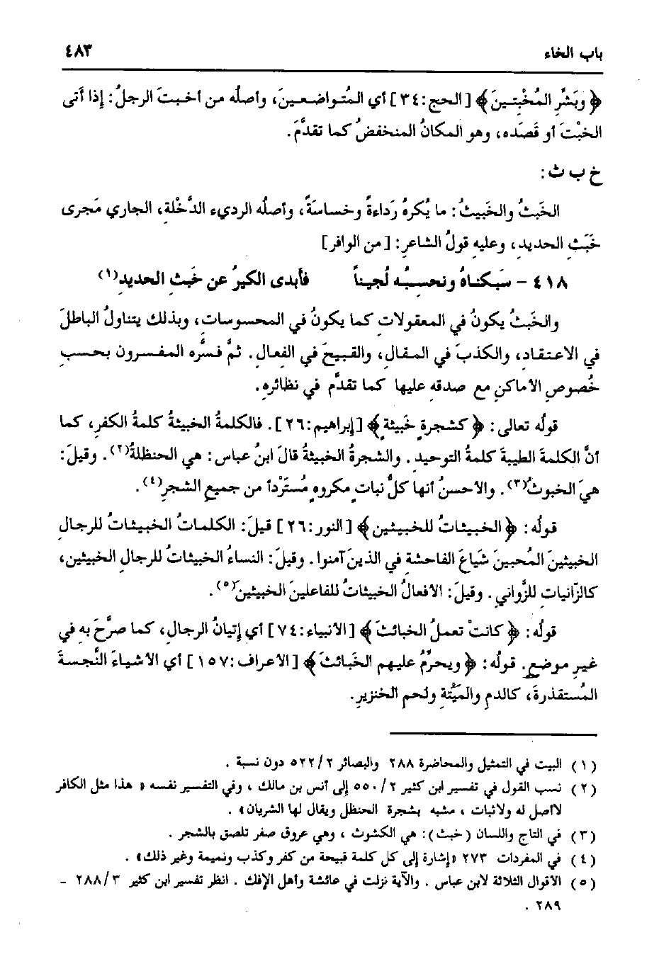 الخبث والخبيث: ما يكره رداءة وخساسة، وأصله الرديء الدخلة، الجاري مجرى خبث الحديد، وعليه قول الشاعر: [من الوافر]