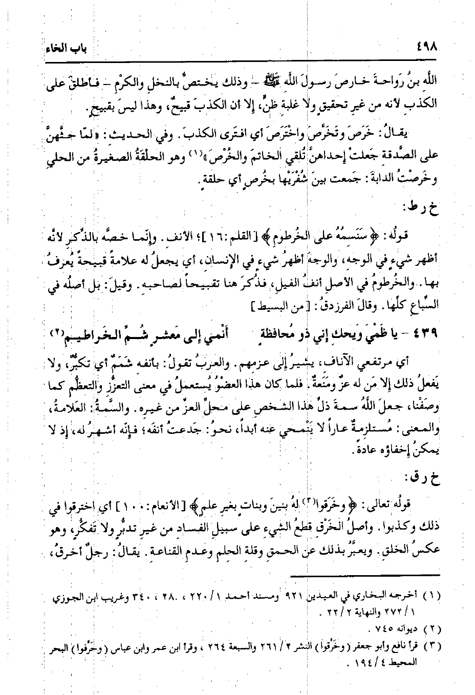 الله بن رواحة خارص رسول الله صلى الله عليه وسلم- وذلك يختص بالنخل والكرم- فأطلق على الكذب لأنه من غير تحقيق ولا غلبة ظن، إلا أن الكذب قبيح، وهذا ليس بقبيح.