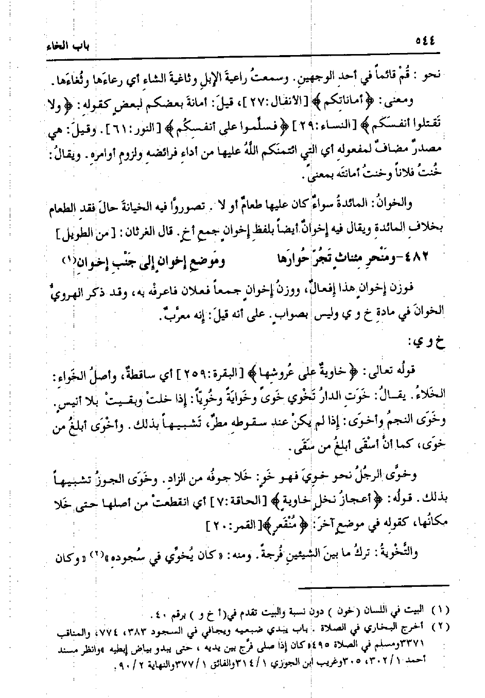 فوزن إخوانٍ هذا إفعال، ووزن إخوانٍ جمعًا فعلان فاعرفه به، وقد ذكر الهروي الخوان في مادة خ وي وليس بصوابٍ. على أنه قيل: إنه معرب.