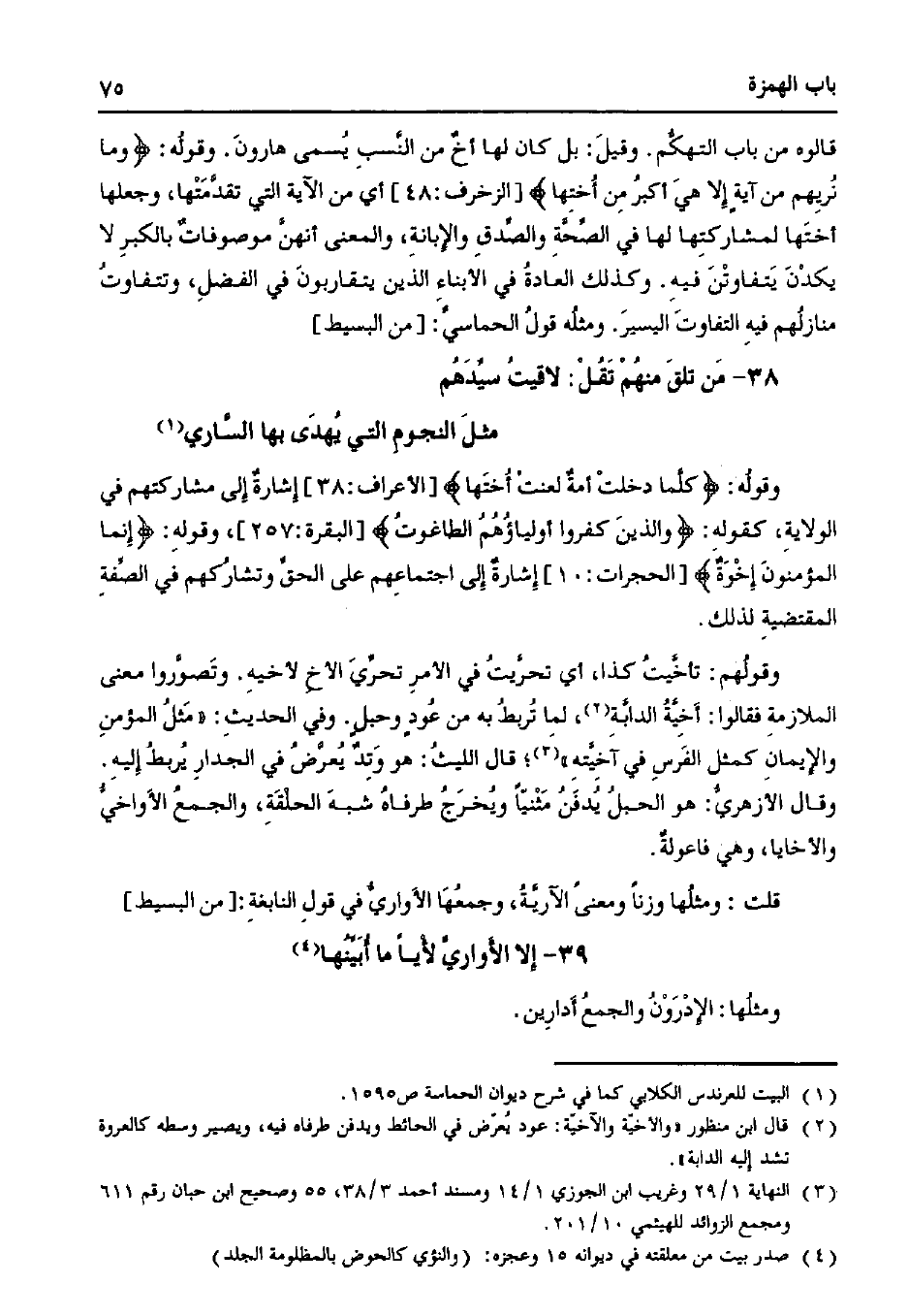 38 - مَن تلقَ منهُمْ تَقُلْ: لاقيتُ سيِّدَهُم ... مثلَ النجومِ التي يُهدَى بها السَّاري