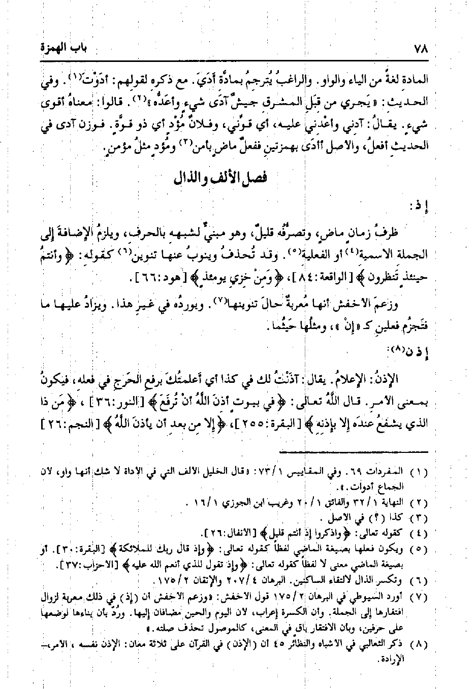 الإذنُ: الإعلامُ. يقال: آذنْتُ لك في كذا أي أَعلمتُكَ برفعِ الحَرجِ في فعلهِ، فيكونُ بمعنى الأمرِ. قال اللهُ تعالى: {في بيوتٍ أذِنَ اللهُ أنْ تُرفَعَ} [النور: 36]، {مَن ذا الذي يشفعُ عندَه إلا بإذنِهِ} [البقرة: 255]، {إلا مِن بعدِ أن يأذنَ اللهُ} [النجم: 26]