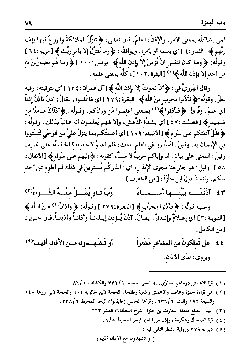 44 - هل تَملكونَ من المشاعرِ مَشْعرًا ... أو تَشْهدون من الأَذانِ أَذينا