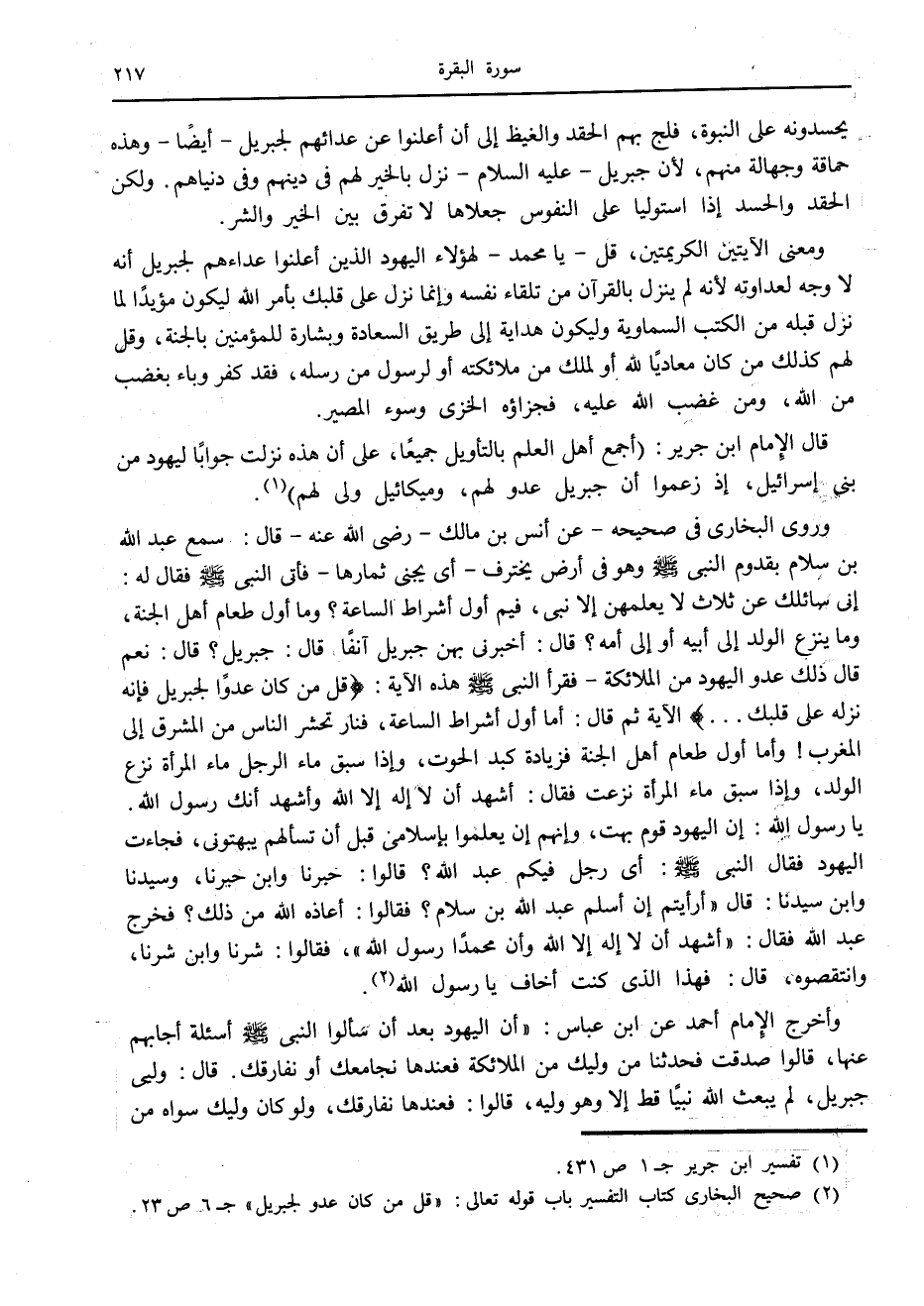 (2) صحيح البخاري كتاب التفسير باب قوله تعالى: «قل من كان عدو لجبريل» ج 6 ص 23.