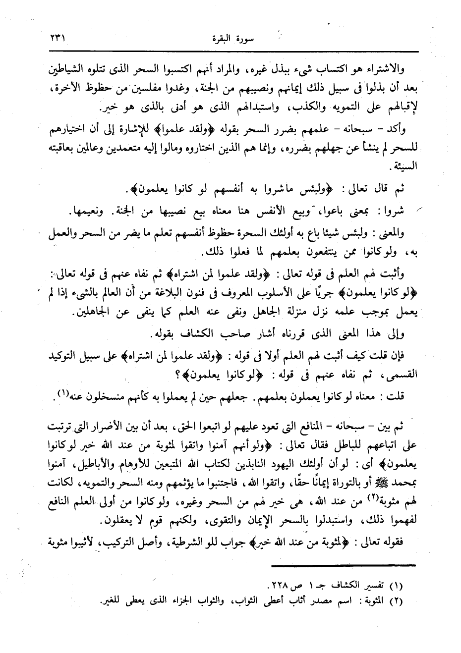 (2) المثوبة: اسم مصدر أثاب أعطى الثواب، والثواب الجزاء الذي يعطى للغير. [.....]