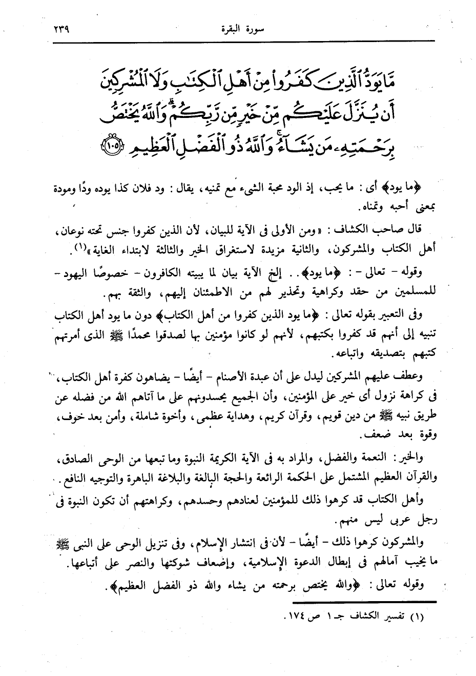 ما يَوَدُّ الَّذِينَ كَفَرُوا مِنْ أَهْلِ الْكِتابِ وَلا الْمُشْرِكِينَ أَنْ يُنَزَّلَ عَلَيْكُمْ مِنْ خَيْرٍ مِنْ رَبِّكُمْ وَاللَّهُ يَخْتَصُّ بِرَحْمَتِهِ مَنْ يَشاءُ وَاللَّهُ ذُو الْفَضْلِ الْعَظِيمِ (105)