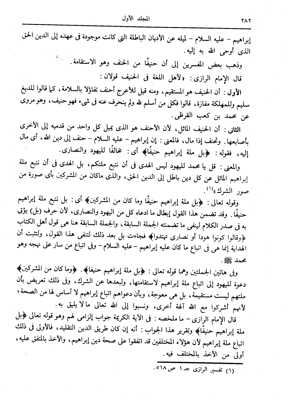 قال الإمام الرازي: «لأهل اللغة في الحنيف قولان: