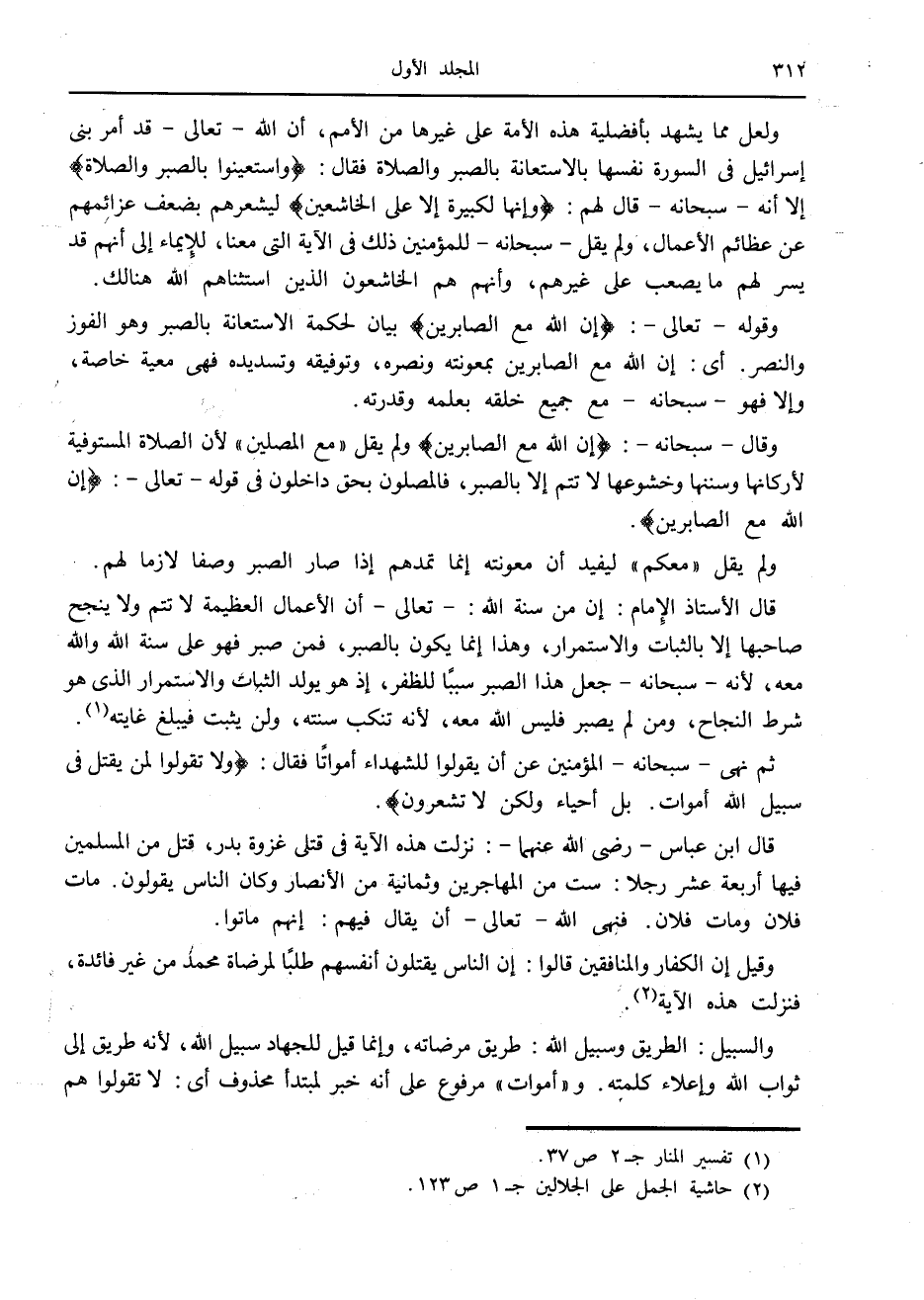 (2) حاشية الجمل على الجلالين ج 1 ص 123.