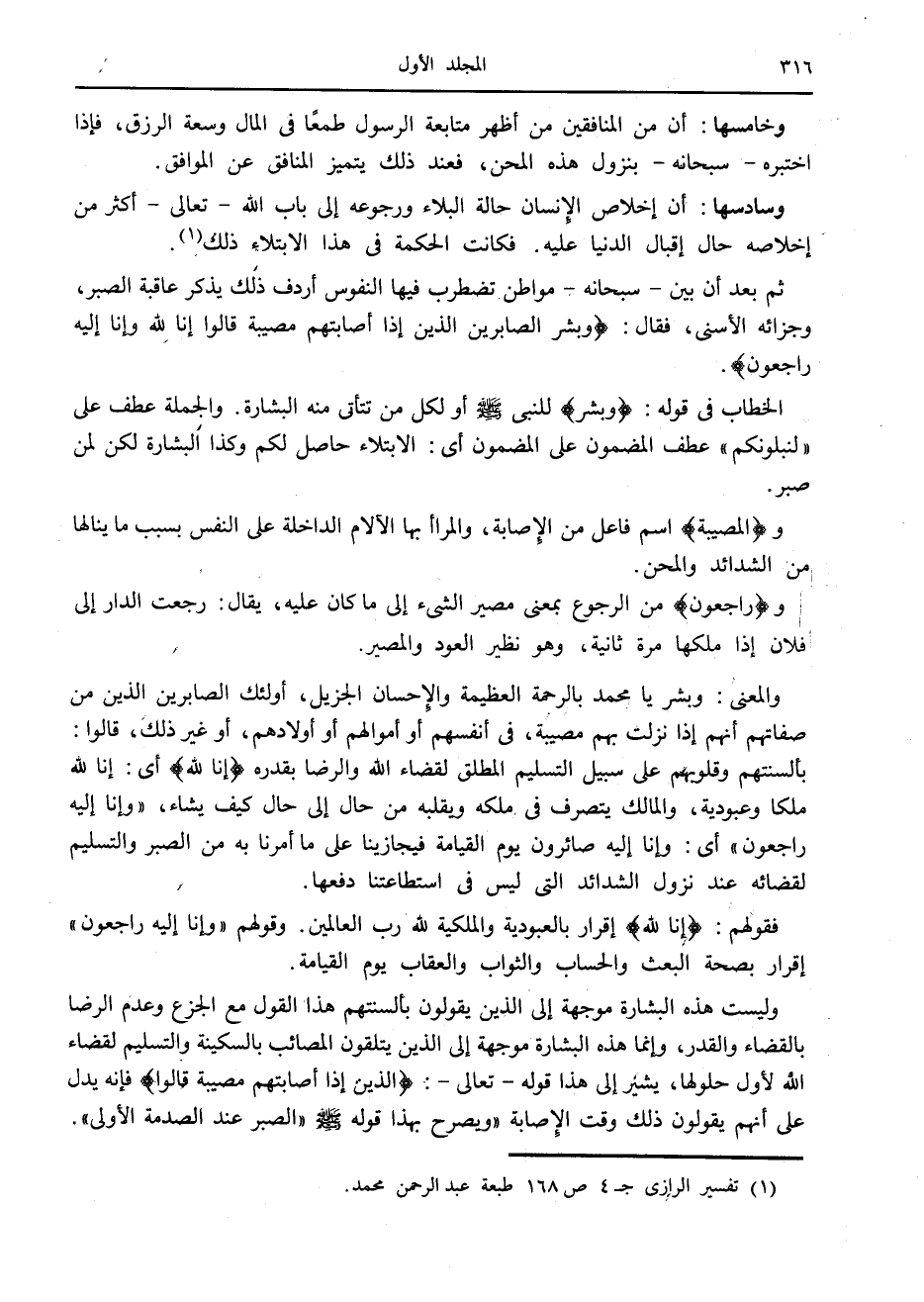 (1) تفسير الرازي ج 4 ص 168 طبعة عبد الرحمن محمد.