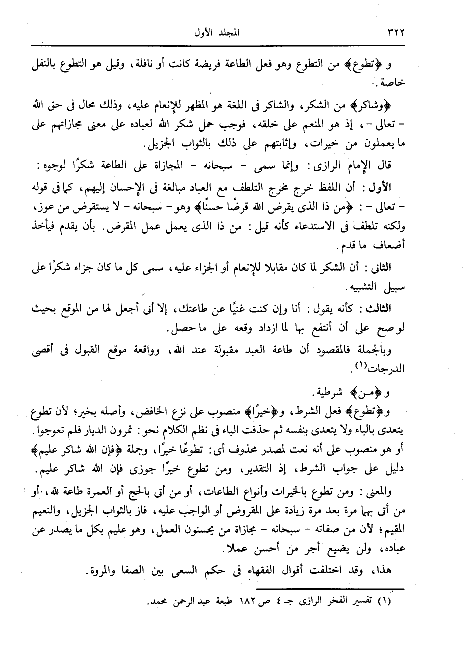 (1) تفسير الفخر الرازي ج 4 ص 182 طبعة عبد الرحمن محمد.