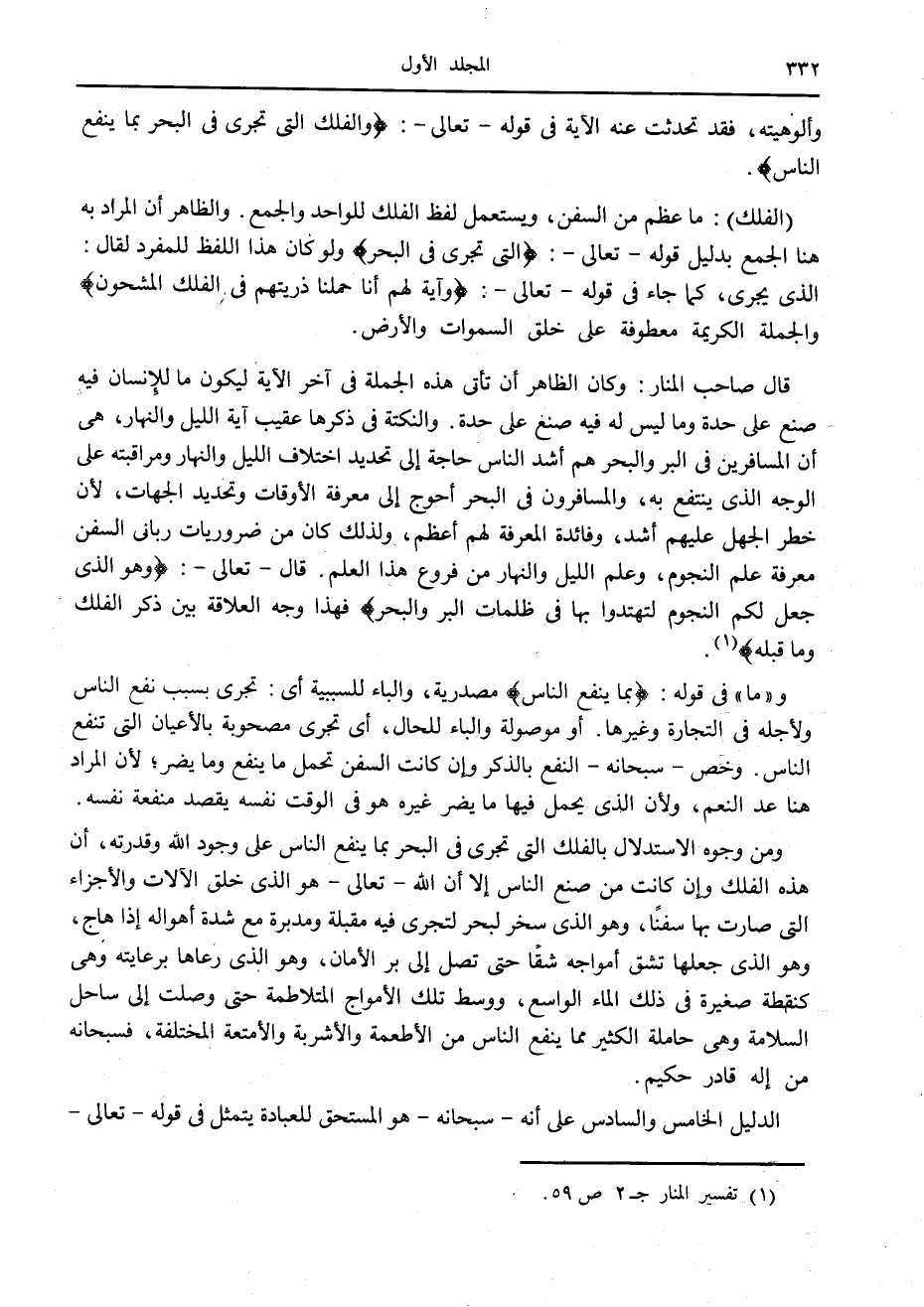 وألوهيته، فقد تحدثت عنه الآية في قوله- تعالى-: وَالْفُلْكِ الَّتِي تَجْرِي فِي الْبَحْرِ بِما يَنْفَعُ النَّاسَ.