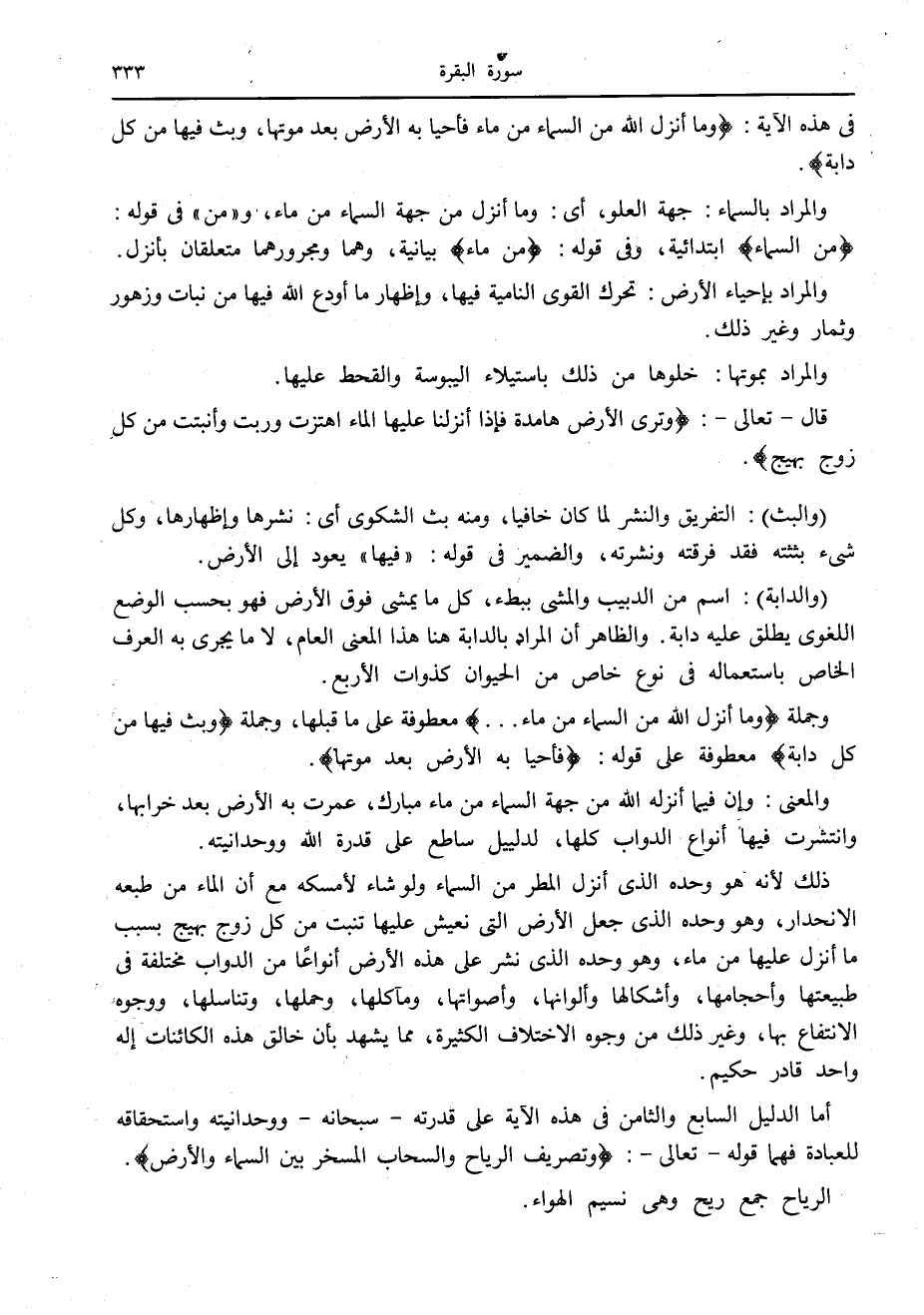 في هذه الآية: وَما أَنْزَلَ اللَّهُ مِنَ السَّماءِ مِنْ ماءٍ فَأَحْيا بِهِ الْأَرْضَ بَعْدَ مَوْتِها، وَبَثَّ فِيها مِنْ كُلِّ دَابَّةٍ.