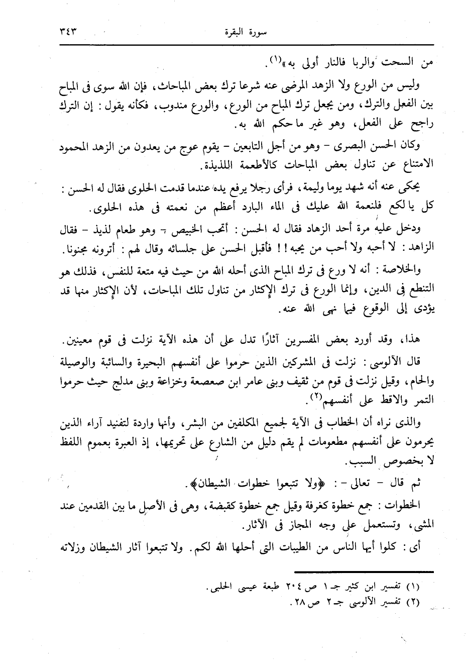 (1) تفسير ابن كثير ج 1 ص 204 طبعة عيسى الحلبي.