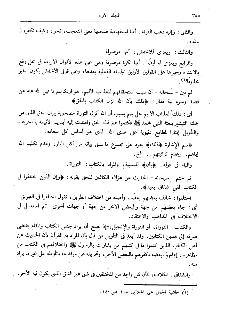 (1) حاشية الجمل على الجلالين ج 1 ص 140.
