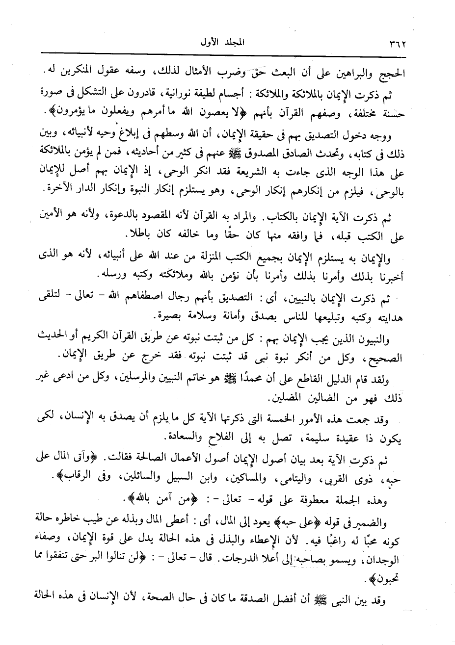 وقد جمعت هذه الأمور الخمسة التي ذكرتها الآية كل ما يلزم أن يصدق به الإنسان، لكي يكون ذا عقيدة سليمة، تصل به إلى الفلاح والسعادة.