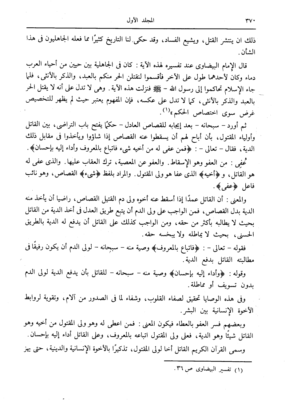 ثم أورد- سبحانه- بعد إيجابه للقصاص العادل- حكما يفتح باب التراضي، بين القاتل وأولياء المقتول، بأن أباح لهم أن يسقطوا عنه القصاص إذا شاؤوا ويأخذوا في مقابل ذلك الدية، فقال- تعالى-: فَمَنْ عُفِيَ لَهُ مِنْ أَخِيهِ شَيْءٌ فَاتِّباعٌ بِالْمَعْرُوفِ وَأَداءٌ إِلَيْهِ بِإِحْسانٍ.