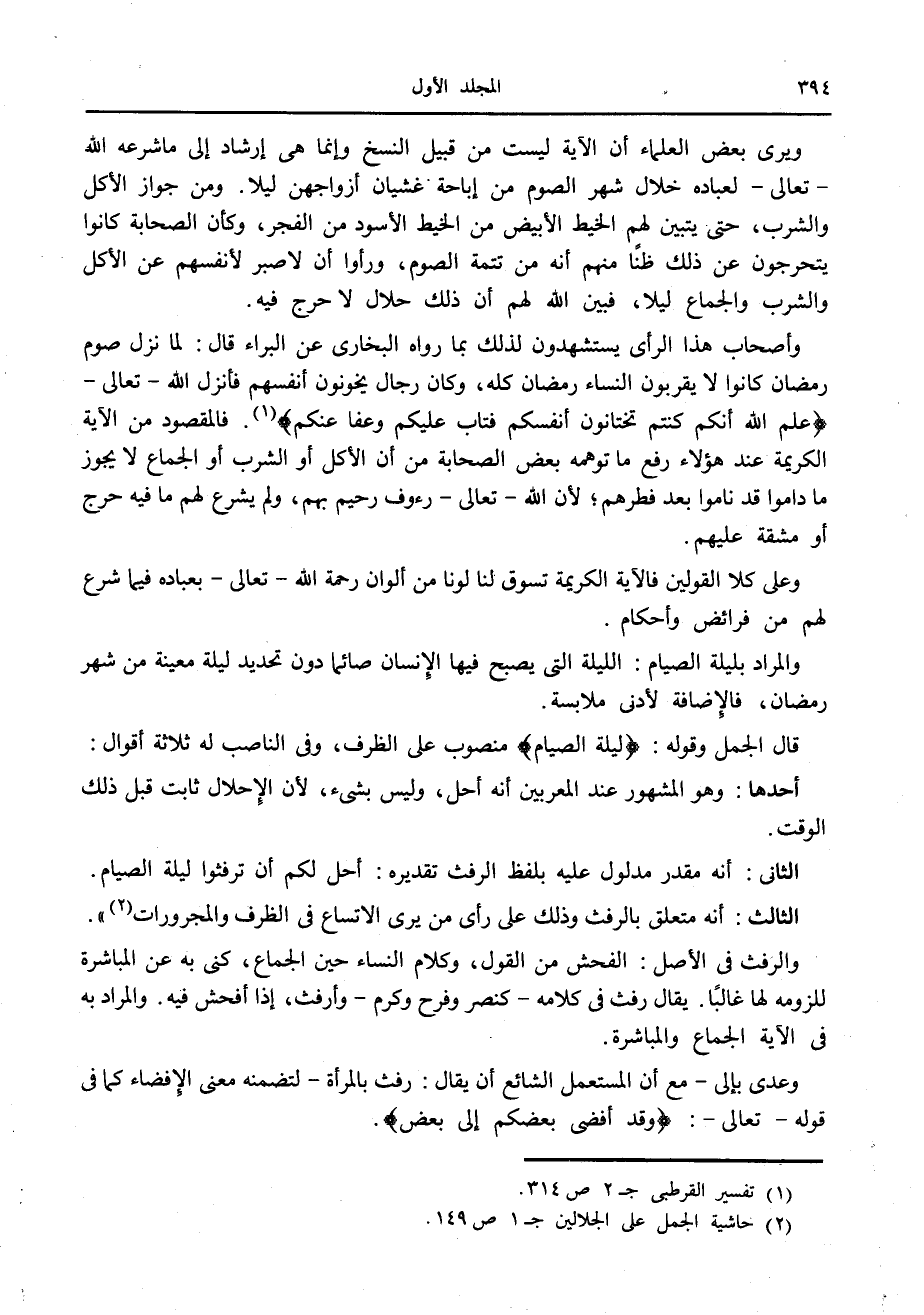 (2) حاشية الجمل على الجلالين ج 1 ص 149.