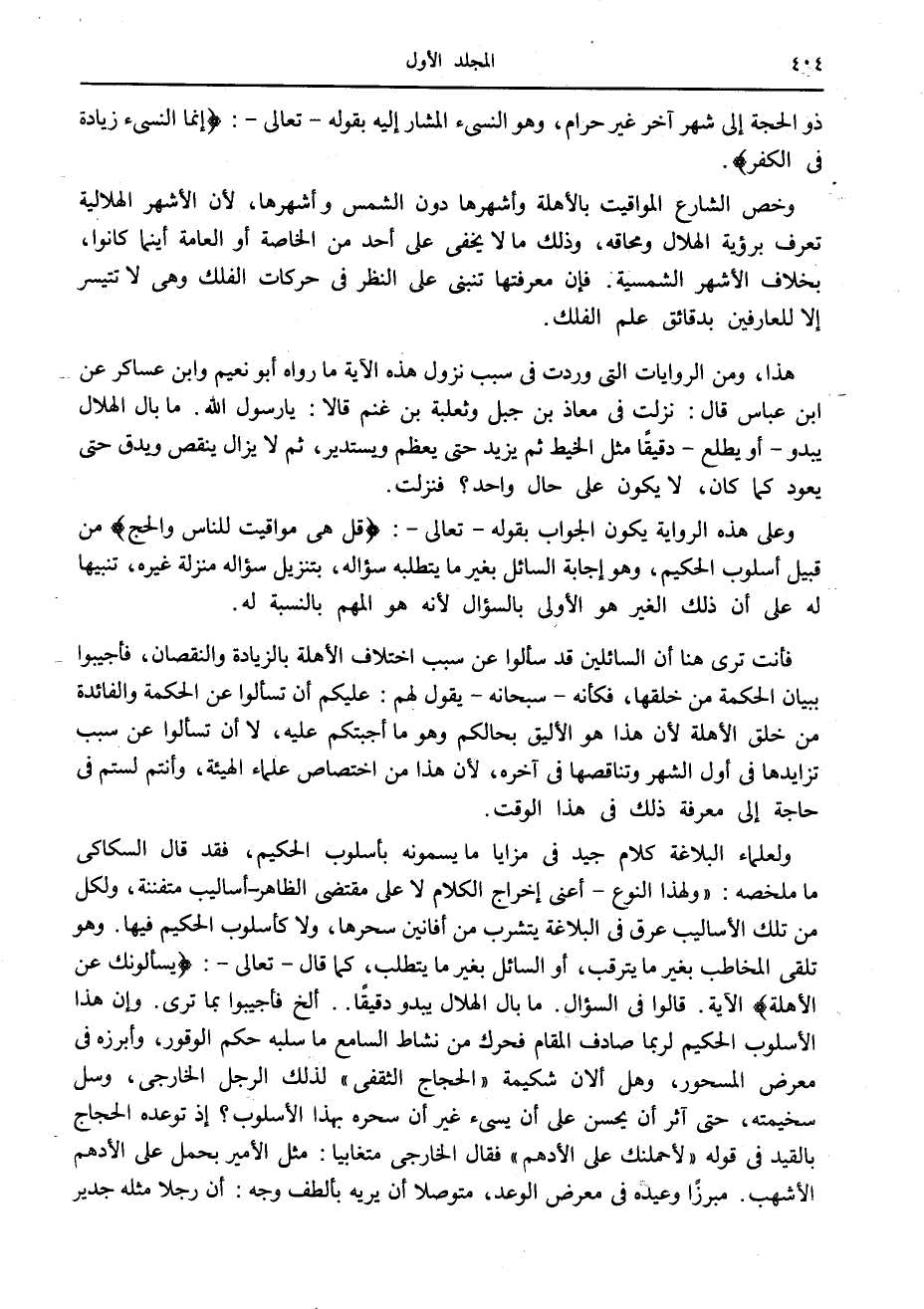 وعلى هذه الرواية يكون الجواب بقوله- تعالى-: قُلْ هِيَ مَواقِيتُ لِلنَّاسِ وَالْحَجِّ من قبيل أسلوب الحكيم، وهو إجابة السائل بغير ما يتطلبه سؤاله، بتنزيل سؤاله منزلة غيره، تنبيها له على أن ذلك الغير هو الأولى بالسؤال لأنه هو المهم بالنسبة له.