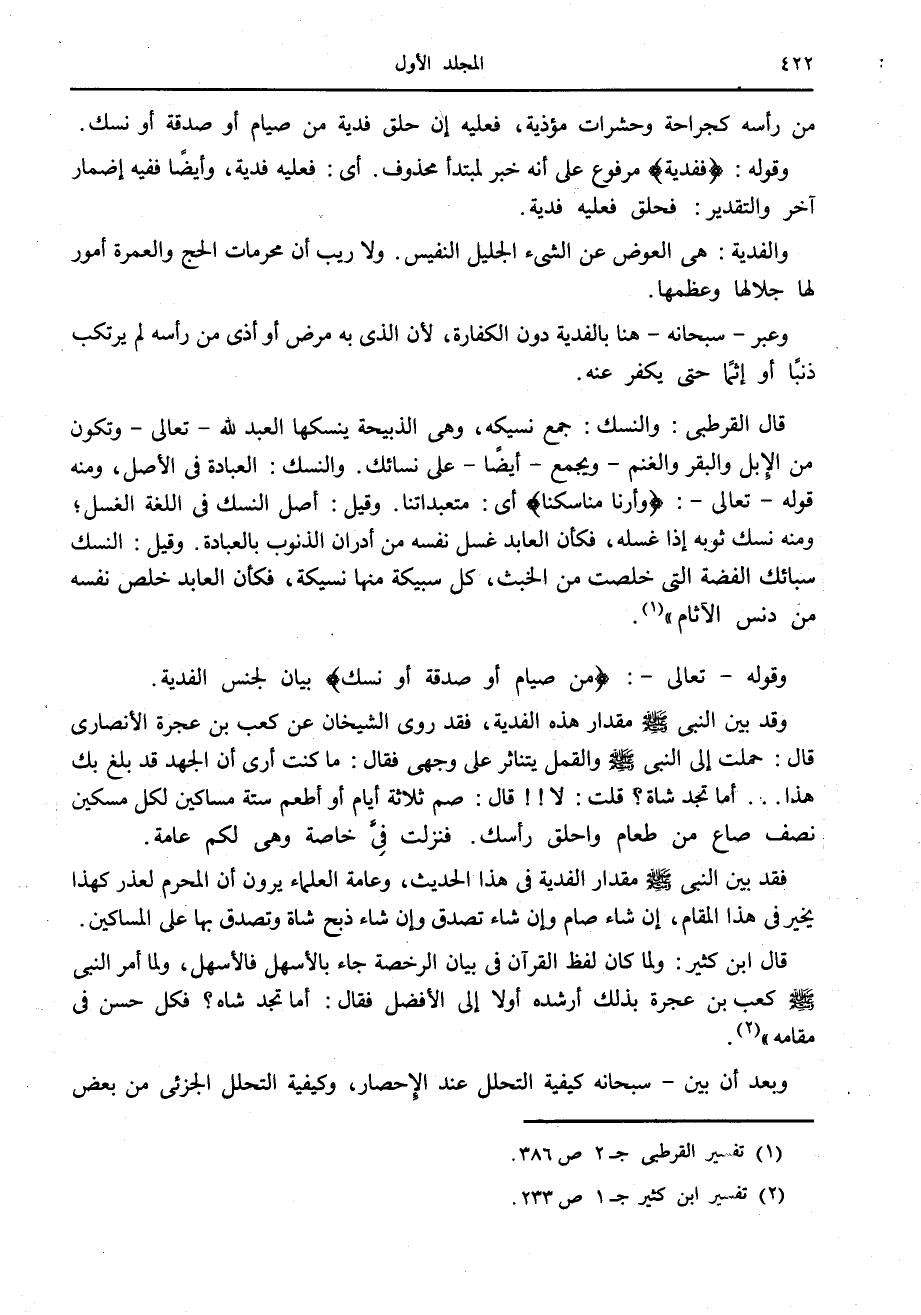 (1) تفسير القرطبي ج 2 ص 386.
