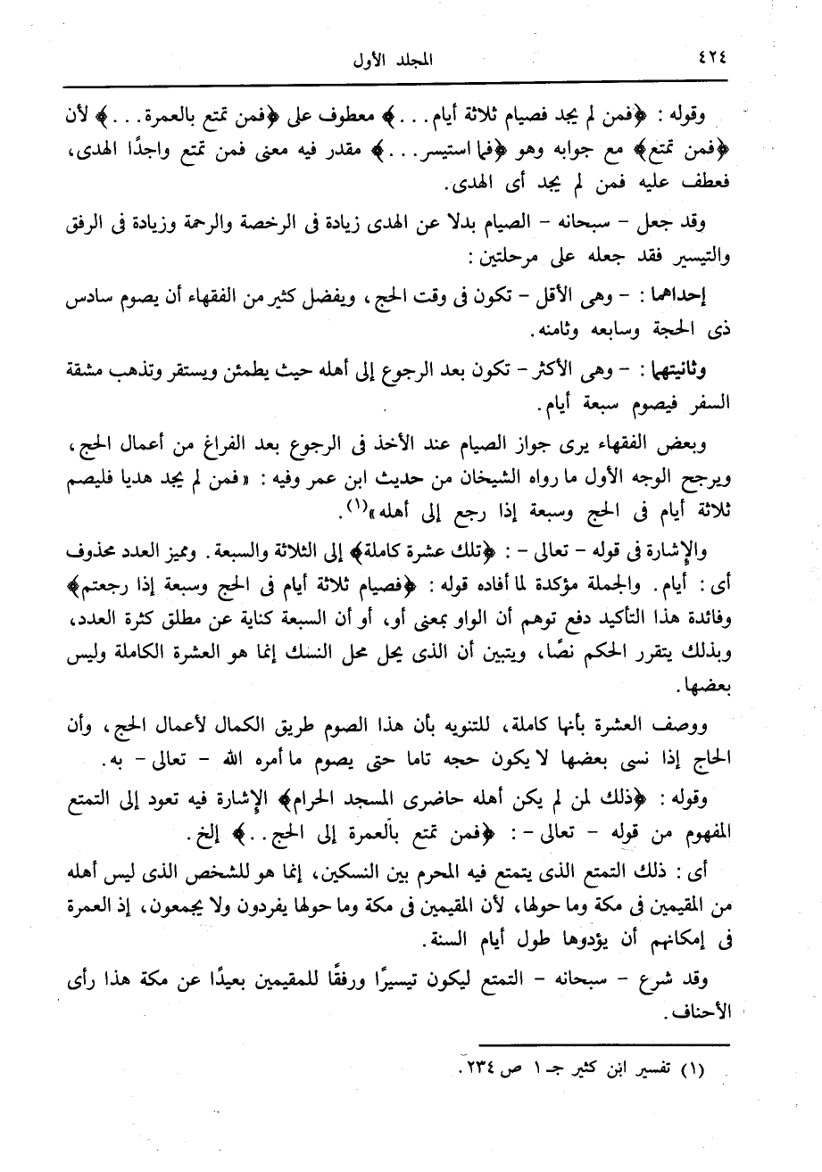 وقد جعل- سبحانه- الصيام بدلا عن الهدى زيادة في الرخصة والرحمة وزيادة في الرفق والتيسير فقد جعله على مرحلتين: