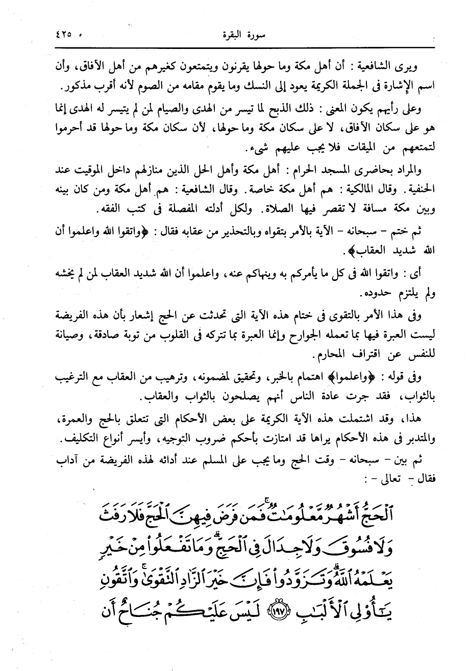والمراد بحاضرى المسجد الحرام: أهل مكة وأهل الحل الذين منازلهم داخل الميقات عند الحنفية. وقال المالكية: هم أهل مكة خاصة. وقال الشافعية: هم أهل مكة ومن كان بينه وبين مكة مسافة لا تقصر فيها الصلاة. ولكل أدلته المفصلة في كتب الفقه.