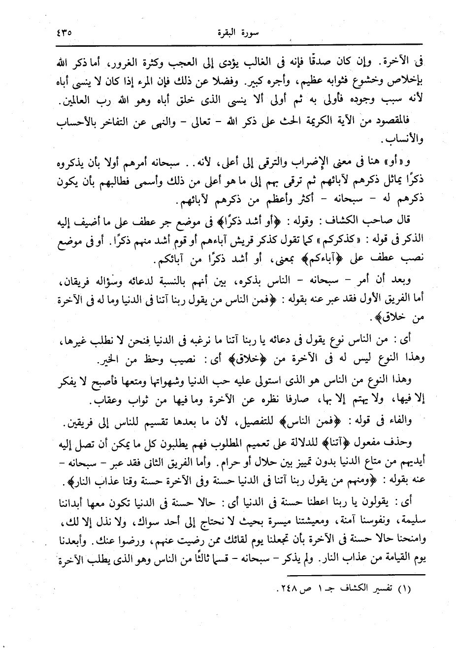 وبعد أن أمر- سبحانه- الناس بذكره، بين أنهم بالنسبة لدعائه وسؤاله فريقان، أما الفريق الأول فقد عبر عنه بقوله: فَمِنَ النَّاسِ مَنْ يَقُولُ رَبَّنا آتِنا فِي الدُّنْيا وَما لَهُ فِي الْآخِرَةِ مِنْ خَلاقٍ.