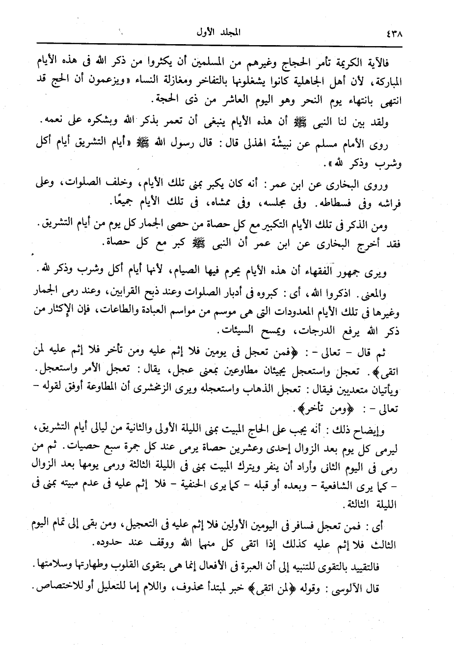 فالآية الكريمة تأمر الحجاج وغيرهم من المسلمين أن يكثروا من ذكر الله في هذه الأيام المباركة، لأن أهل الجاهلية كانوا يشغلونها بالتفاخر ومغازلة النساء «ويزعمون أن الحج قد انتهى بانتهاء يوم النحر وهو اليوم العاشر من ذي الحجة.