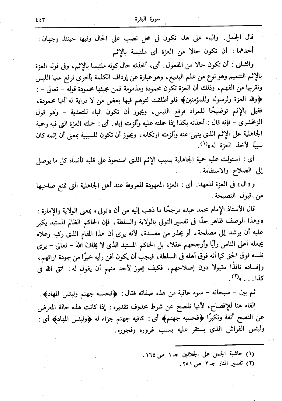 (2) تفسير المنار ج 2 ص 251.