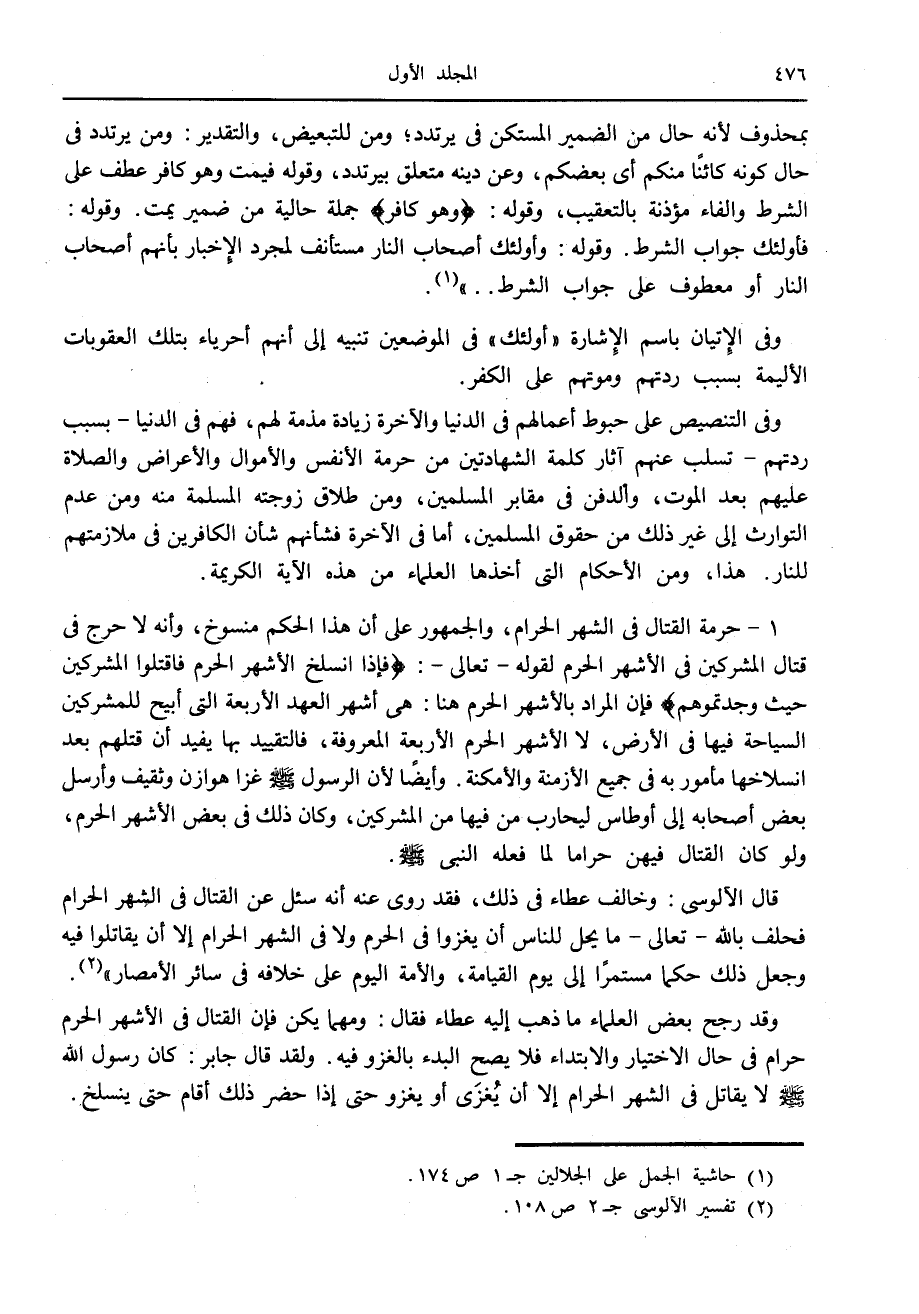(1) حاشية الجمل على الجلالين ج 1 ص 174.