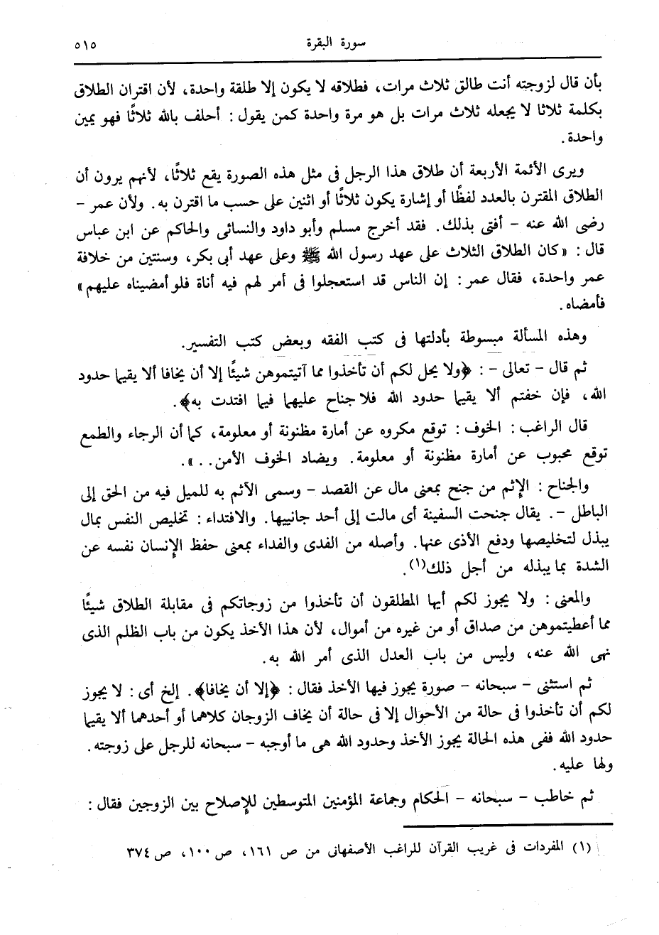 ثم قال- تعالى-: وَلا يَحِلُّ لَكُمْ أَنْ تَأْخُذُوا مِمَّا آتَيْتُمُوهُنَّ شَيْئاً إِلَّا أَنْ يَخافا أَلَّا يُقِيما حُدُودَ اللَّهِ، فَإِنْ خِفْتُمْ أَلَّا يُقِيما حُدُودَ اللَّهِ فَلا جُناحَ عَلَيْهِما فِيمَا افْتَدَتْ بِهِ.