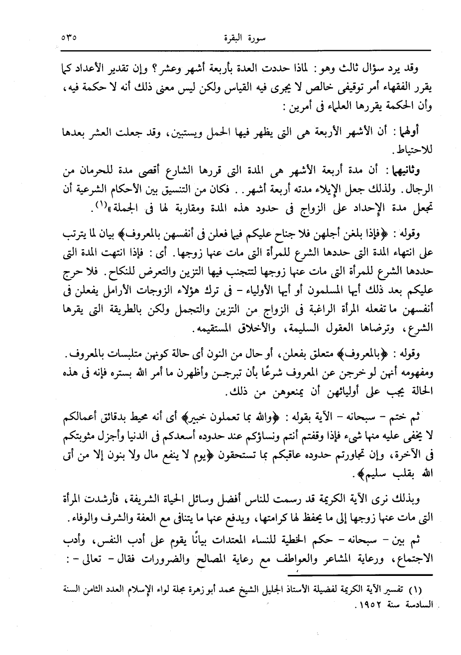 (1) تفسير الآية الكريمة لفضيلة الأستاذ الجليل الشيخ محمد أبو زهرة مجلة لواء الإسلام العدد الثامن السنة السادسة سنة 1952.